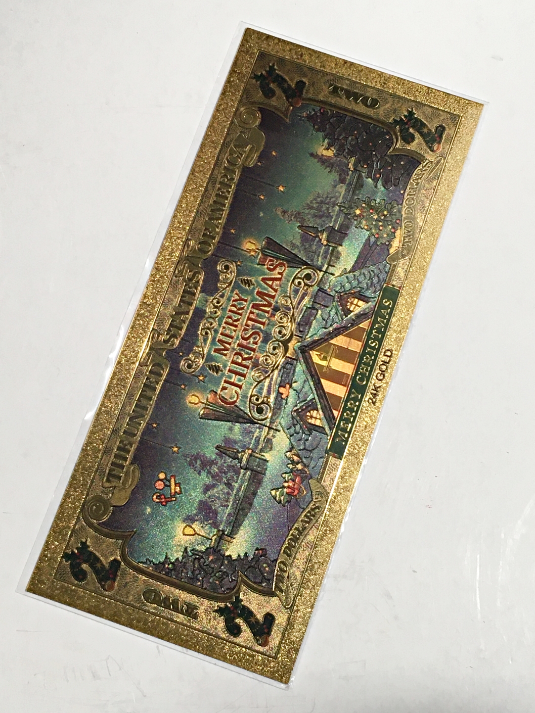 Merry Christmas/Santa Gold Foil $2 Banknote