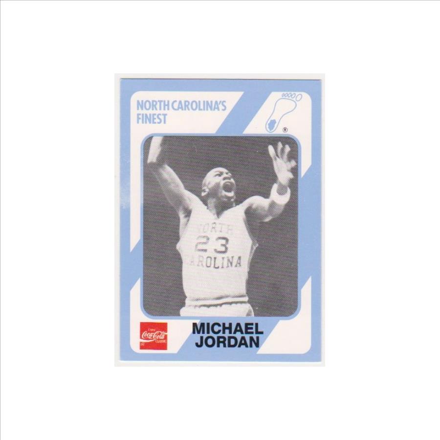 This is an original 1989 North Carolina Michael Jordan #65 college card.  It features him in his college uniform before his superstar NBA days.  It is an approximately VG condition card. It has wear including some surface fading on the left edge, but overall displays pretty well in a holder.