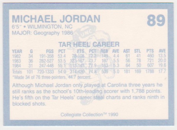 Michael Jordan 1990 North Carolina #89 College Card