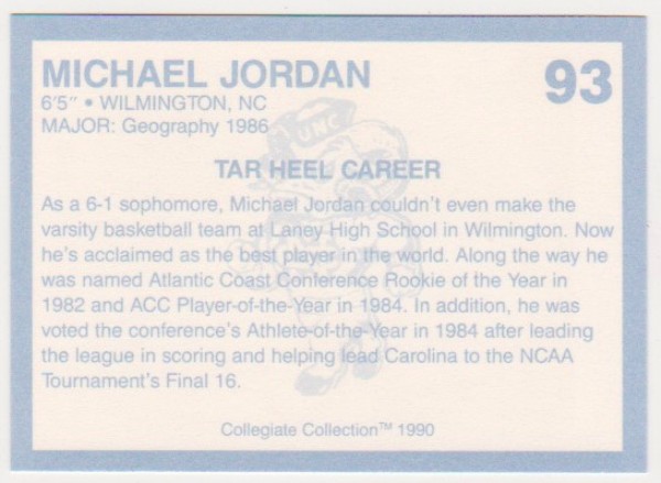 Michael Jordan 1990 North Carolina #93 College Card