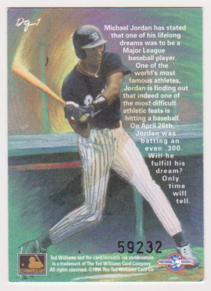 Michael Jordan Baseball Rookie - 1994 Ted Williams Company Gardiner Collection #DG-1