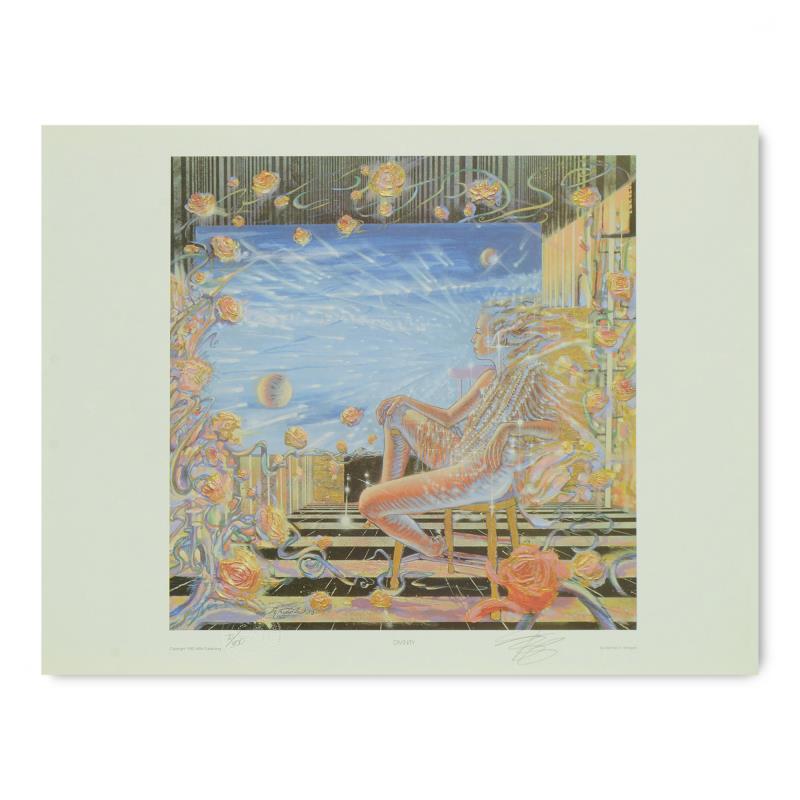 "Divinity" is a limited edition lithograph on paper by Michael R. Whipple, numbered and hand signed by the artist. This piece bears an embossed Seal of Authenticity and comes with Letter of Authenticity. Measures approx. 23" x 17.5" (image).