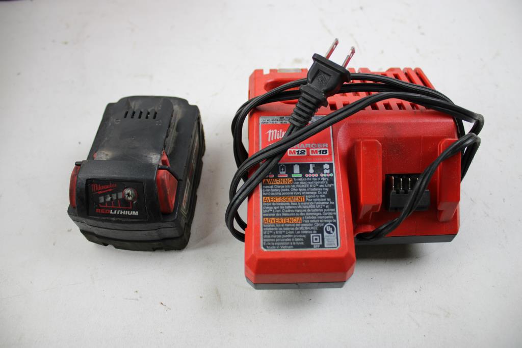Milwaukee 1/2" Square-Ring Impact Wrench, M12/M18 Charger, And XC5.0 Battery