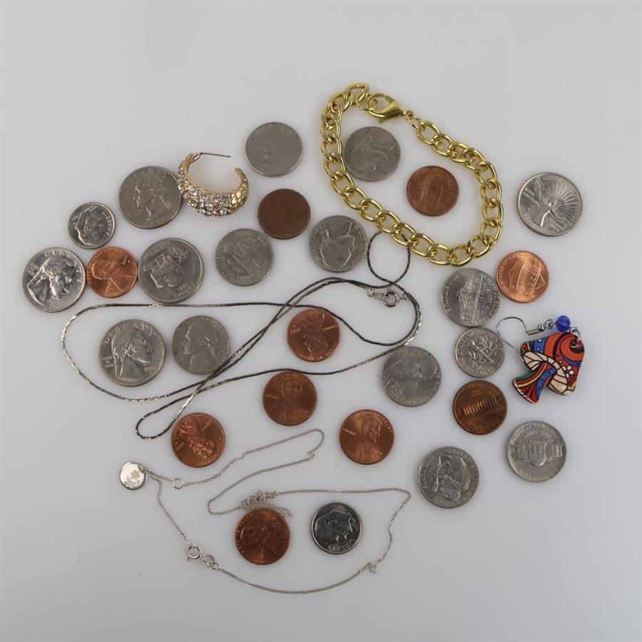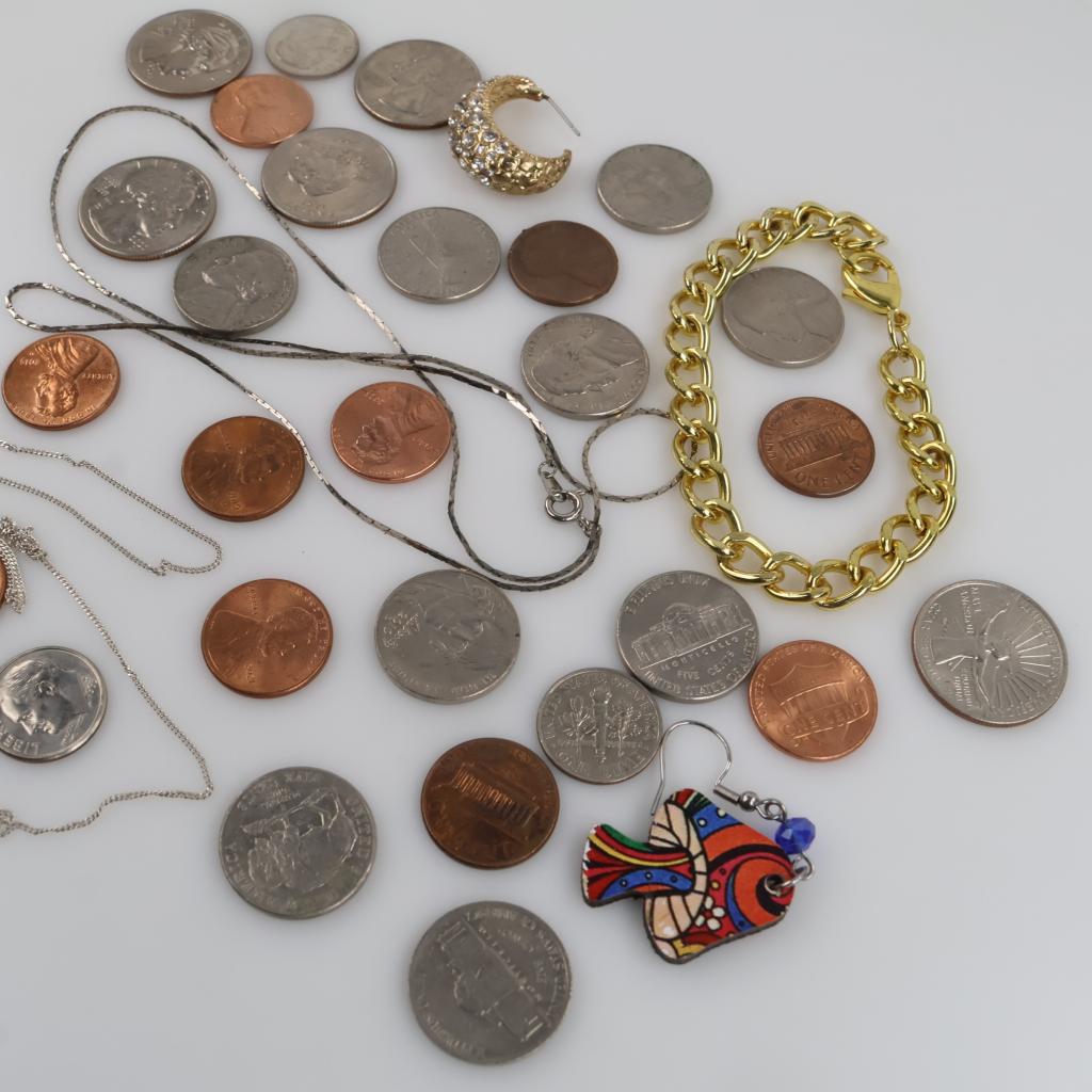 Mixed Jewelry And US Currency, 30+ Pieces (Including 1 Silver Necklace)