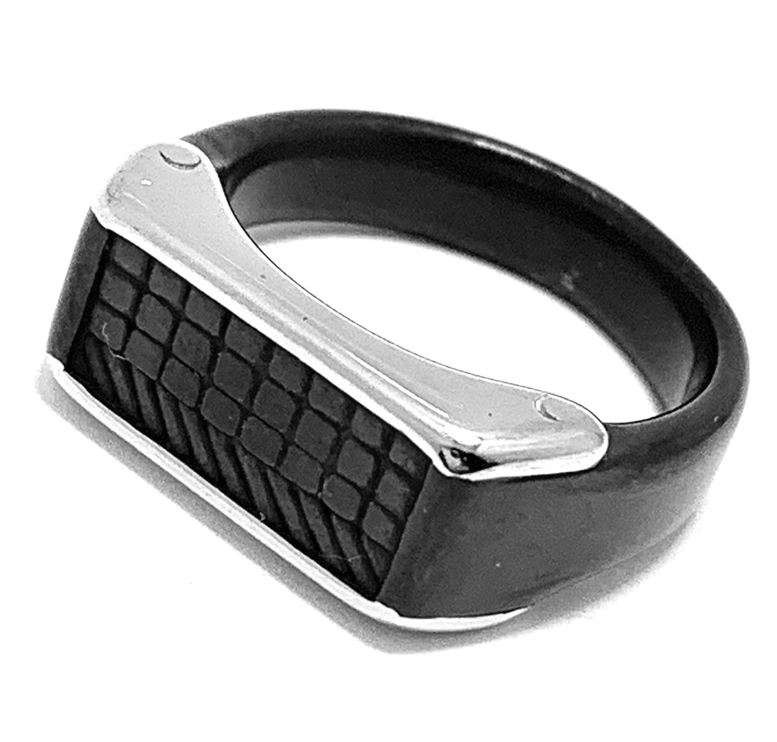 Modern Desighn Mens Steinless Steel & Ebonite Ring