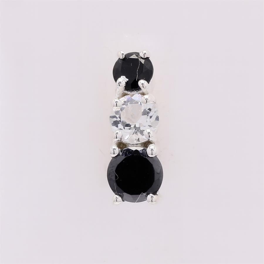 NO RESERVE 0.91 Ct Round Black Spinel, White Topaz 925 Sterling Silver Pendant