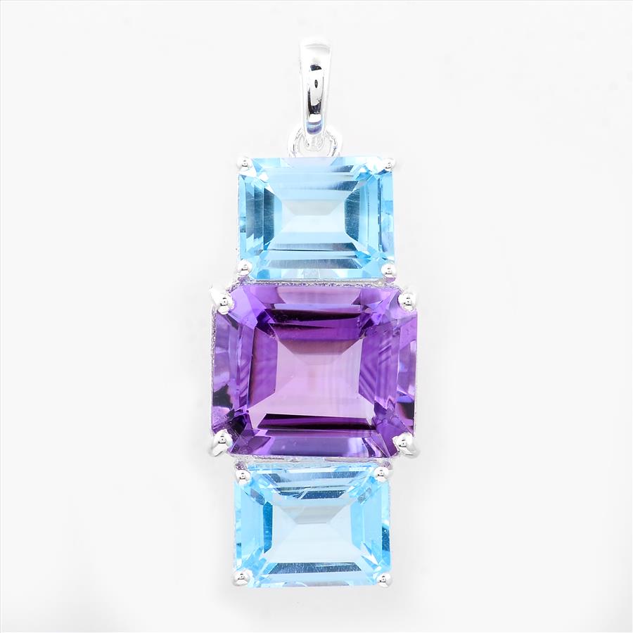 NO RESERVE 10.66 Ct Octagon Amethyst, Blue Topaz, 925 Sterling Silver Pendant