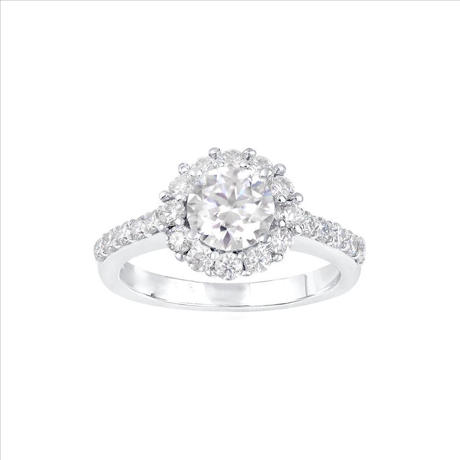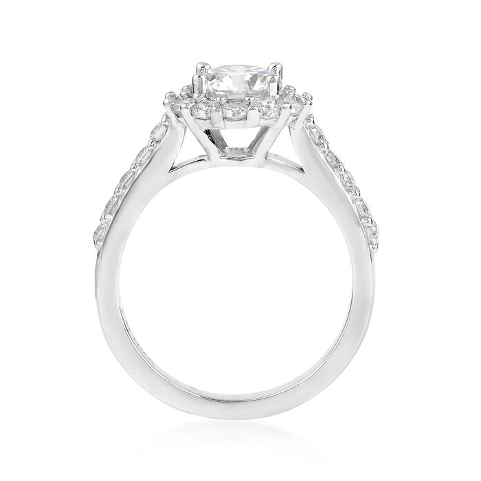 NO RESERVE 1.60 ct. t.w. Moissanite Halo Ring in Sterling Silver. Size 5