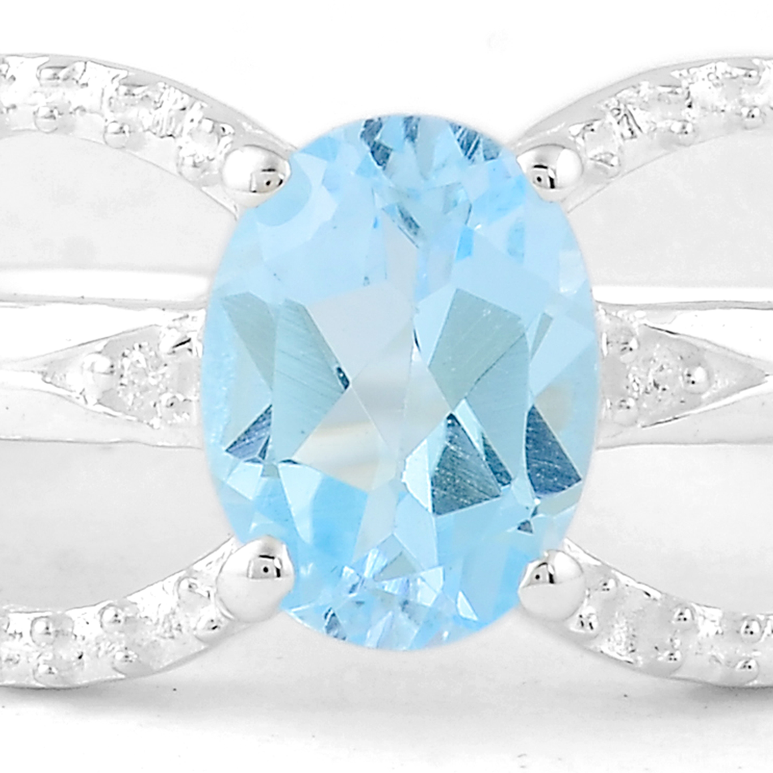 NO RESERVE 1.68 Ct Oval Blue Topaz, Cubic Zirconia 925 Sterling Silver Ring
