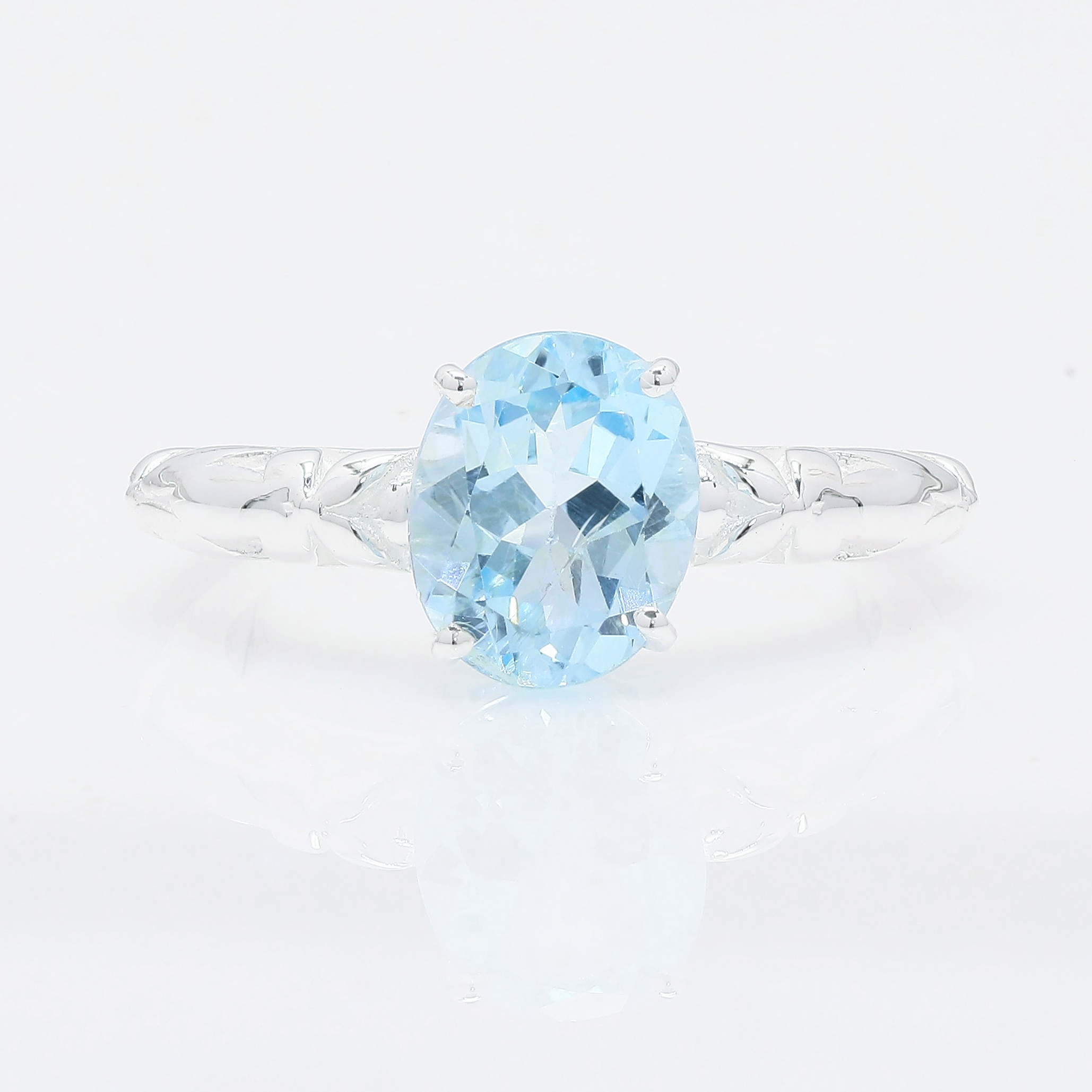 NO RESERVE 1.90 Ct Oval Created Aquamarine 925 Sterling Silver Ring