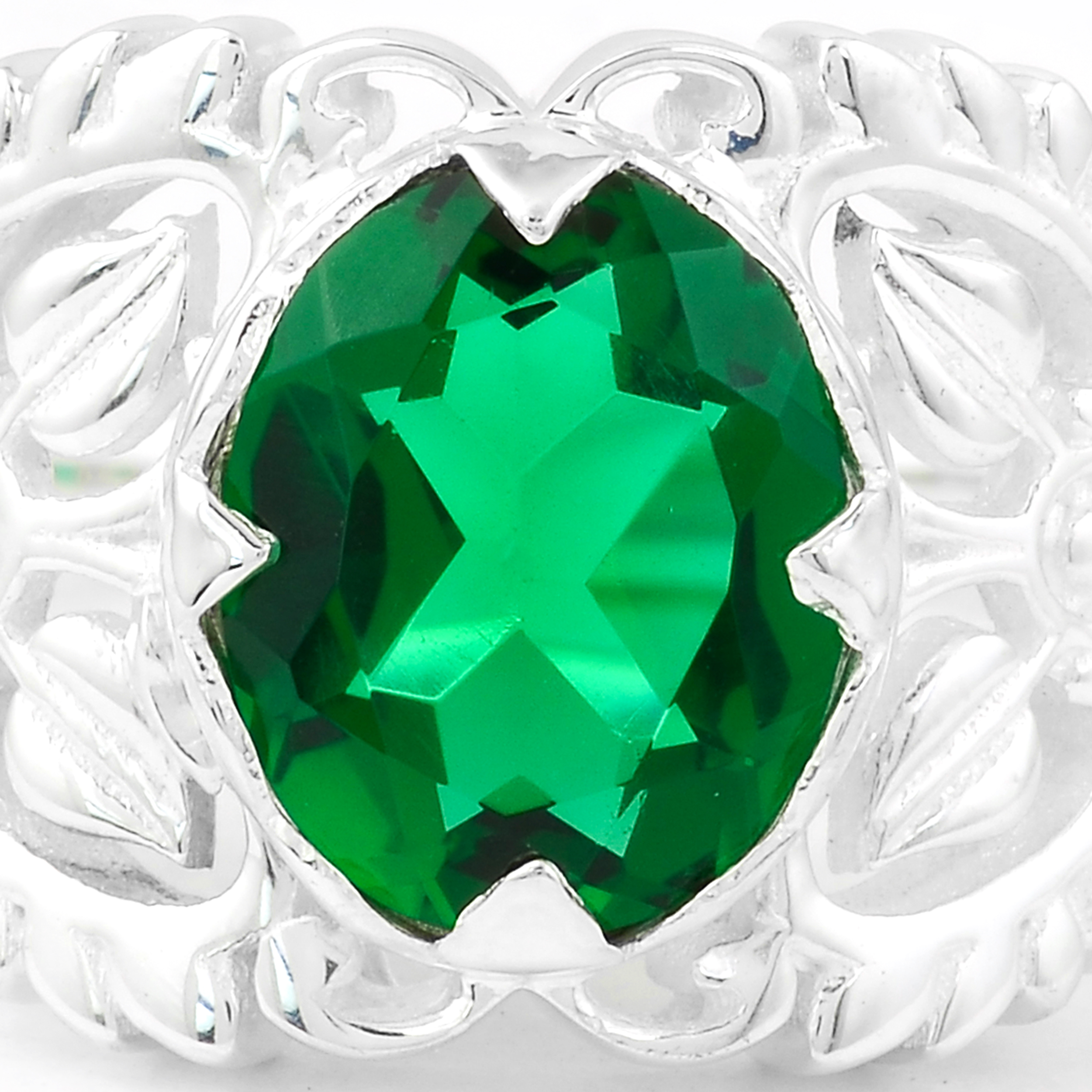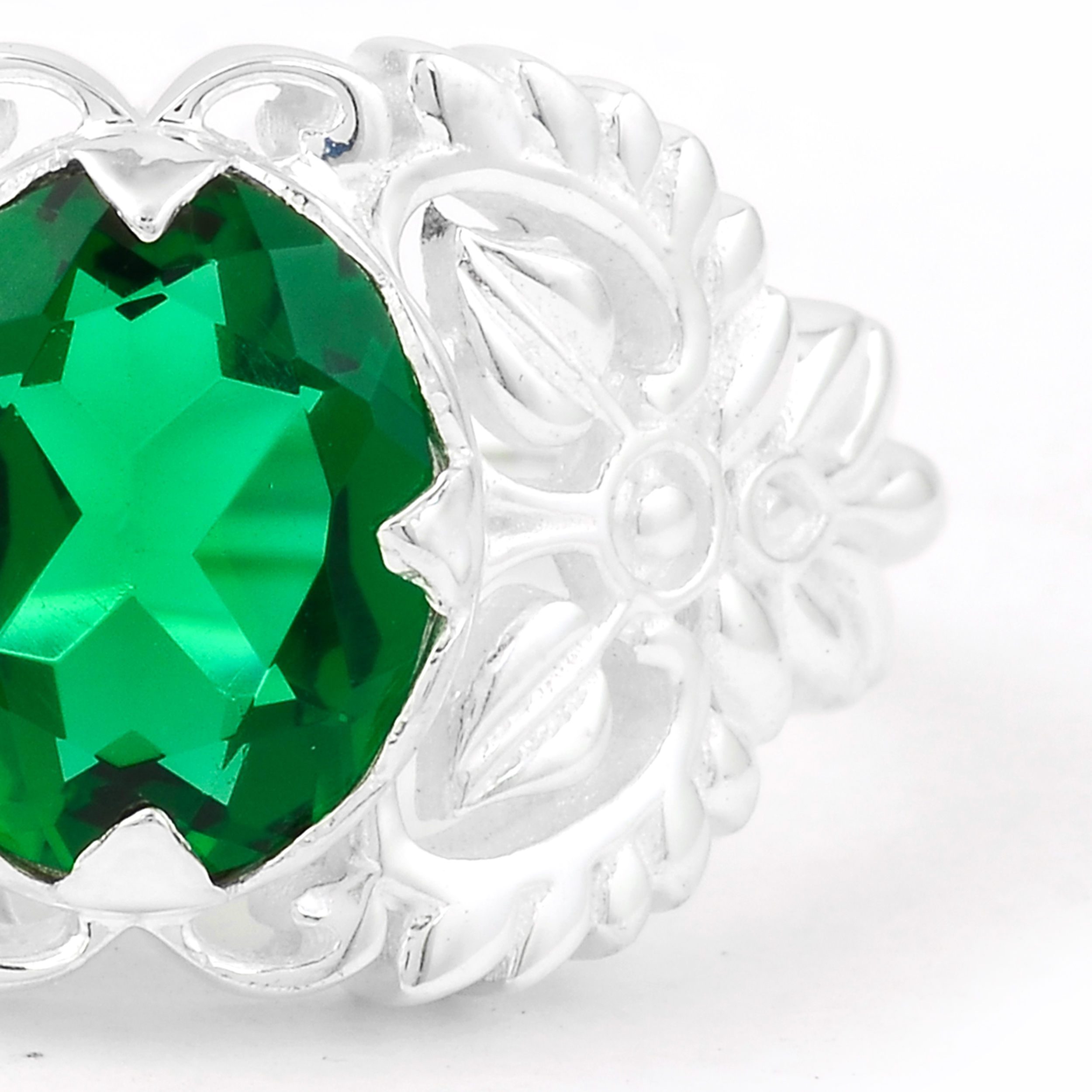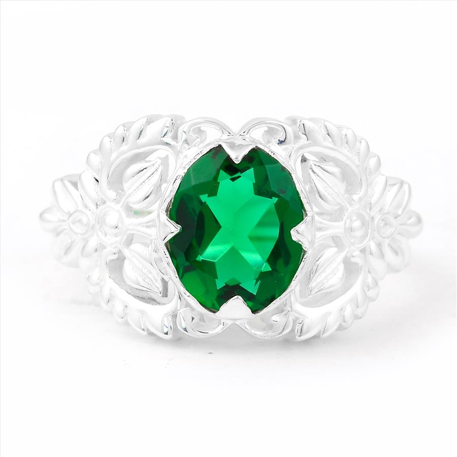 NO RESERVE 2.15 Ct Oval Created Emerald 925 Sterling Silver Ring