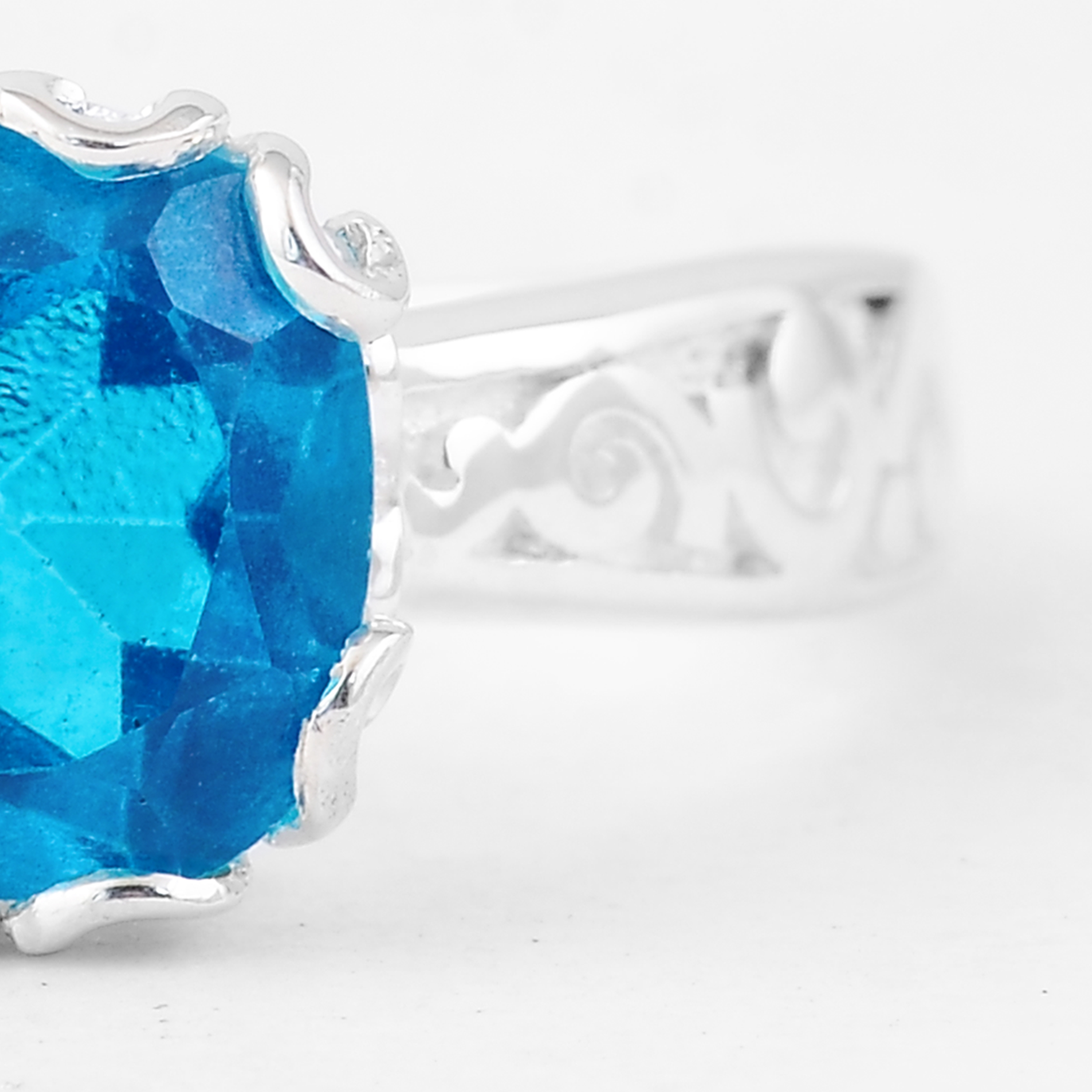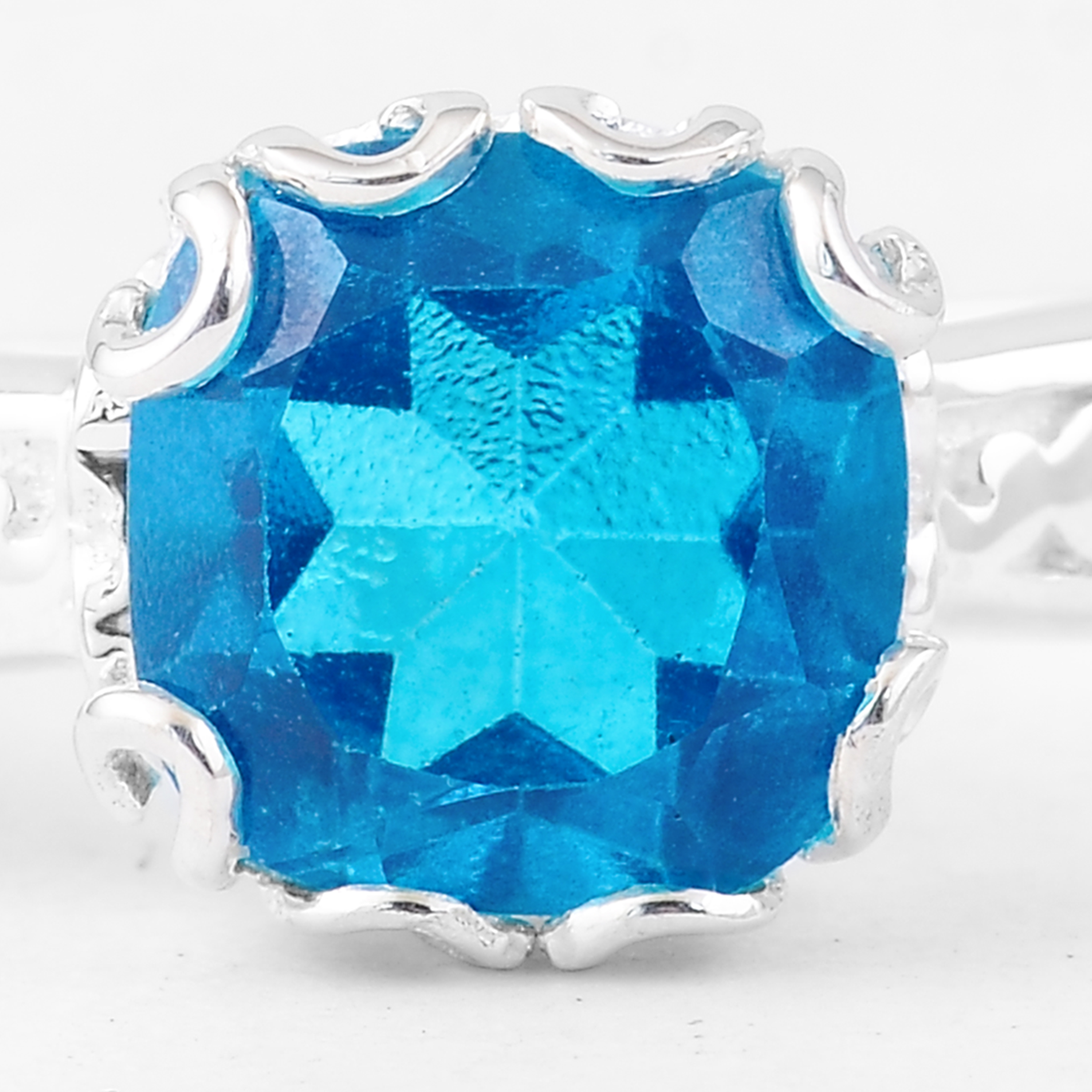 NO RESERVE 2.87 Ct Cushion Pariba Topaz, 925 Sterling Silver Ring
