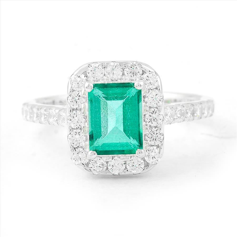 NO RESERVE 3.62 Ct Octagon Green Topaz, Cubic Zirconia, 925 Sterling Silver Ring