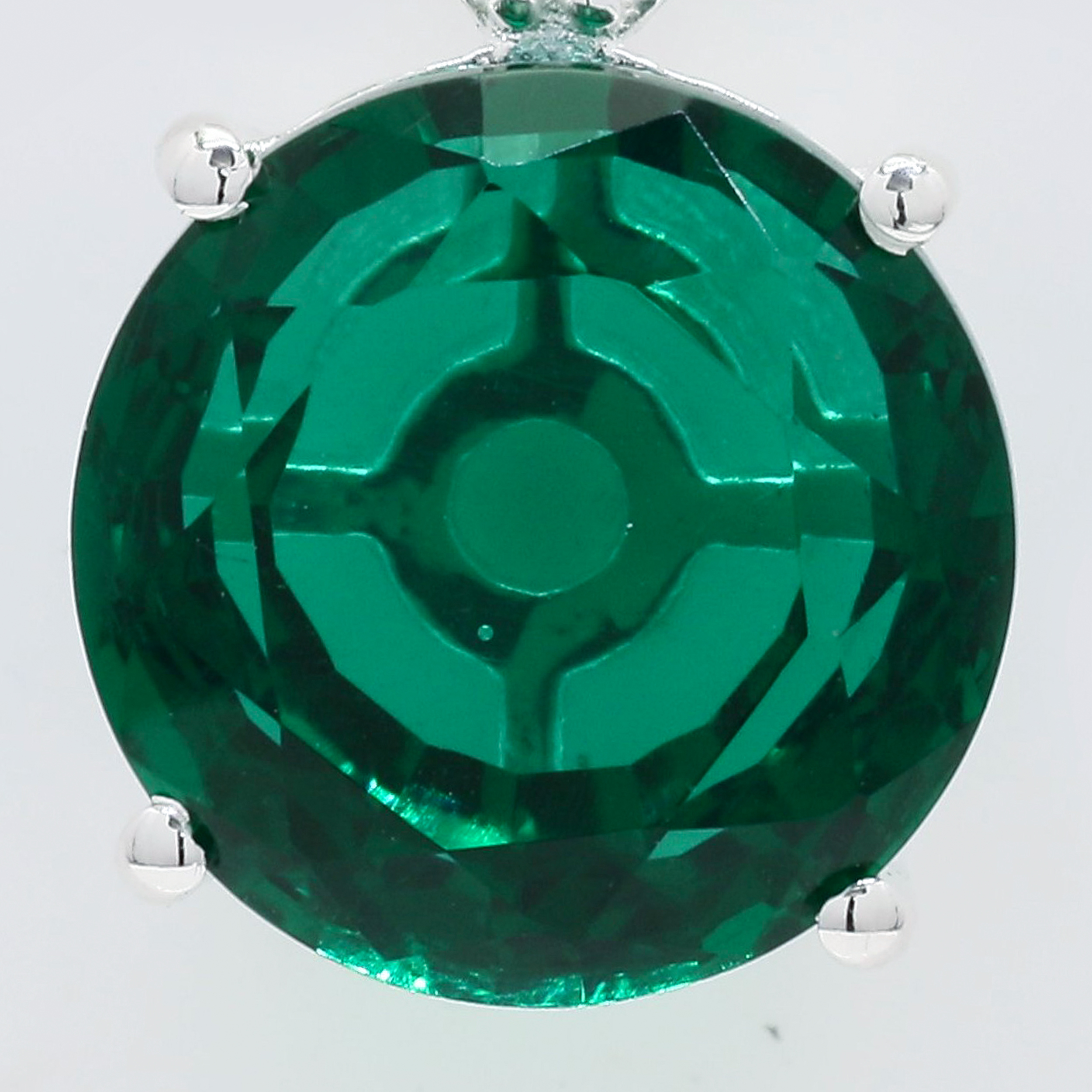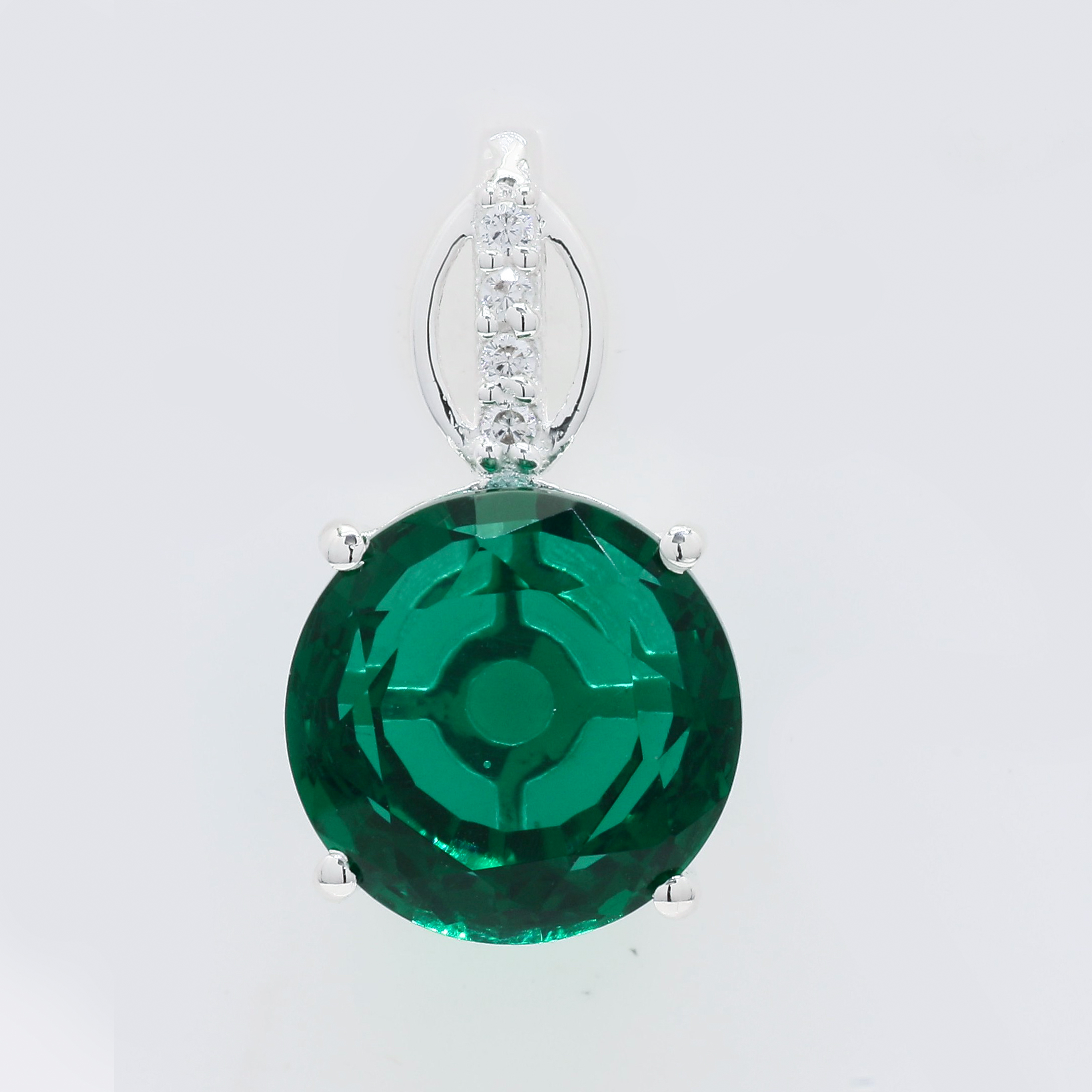 NO RESERVE 3.75 Ct Round Created Emerald, Cubic Zirconia 925 Sterling Silver Pendant
