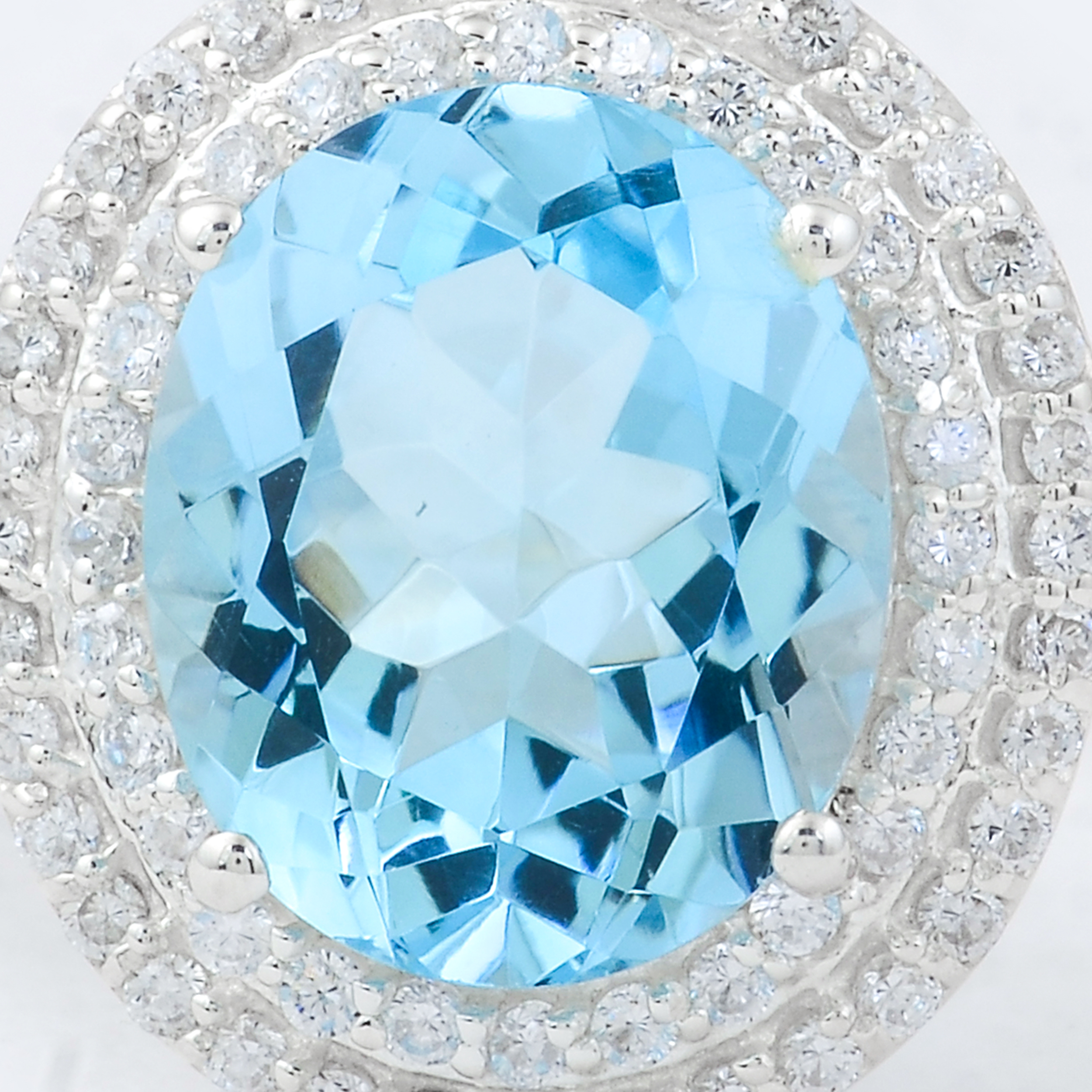 NO RESERVE 5.08 Ct Oval Blue Topaz, Cubic Zirconia 925 Sterling Silver Ring