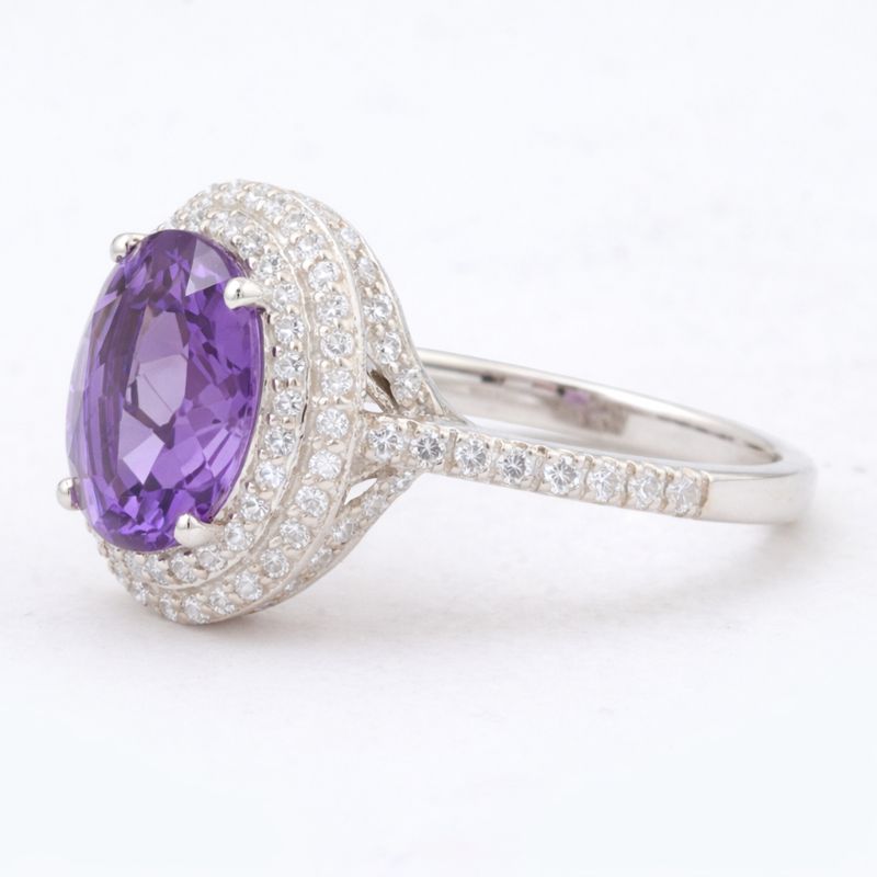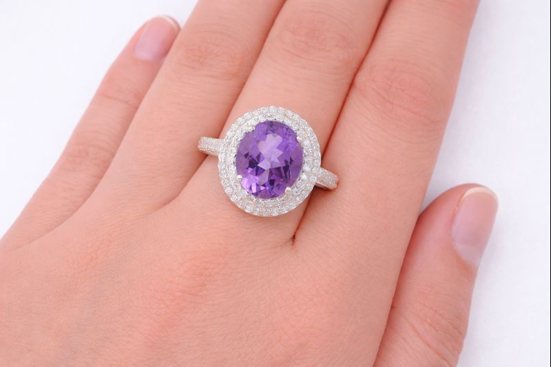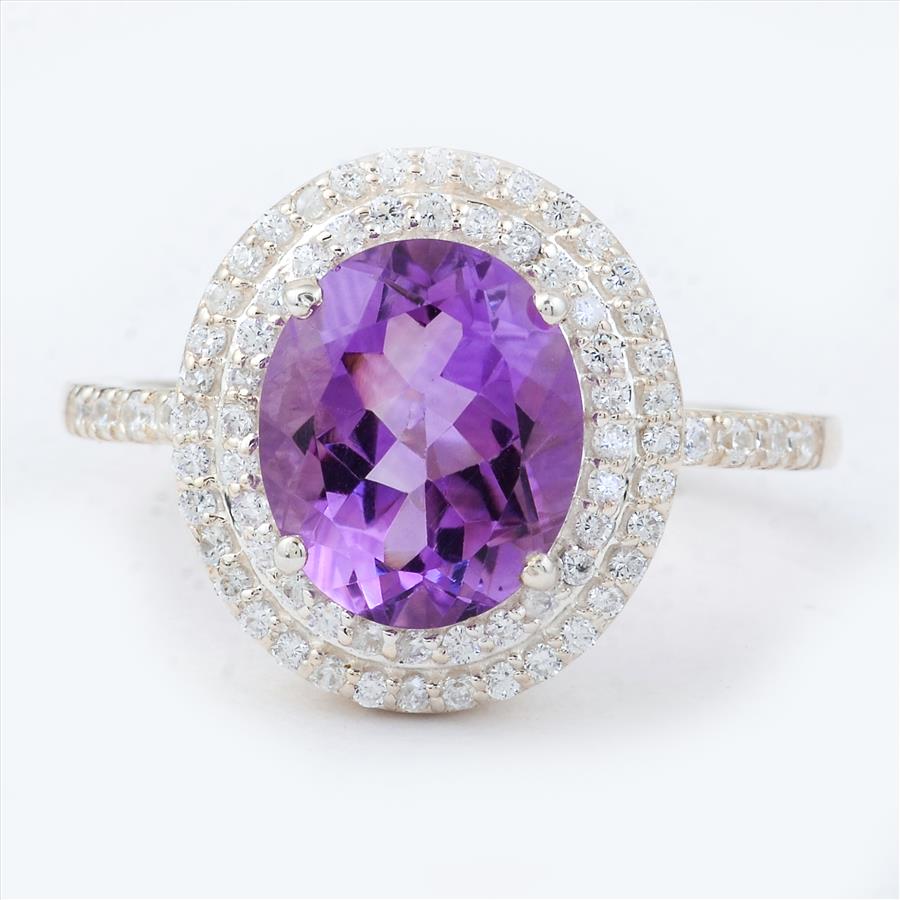 NO RESERVE 5.30 Ct Oval Amethyst, Cubic Zirconia 925 Sterling Silver Ring