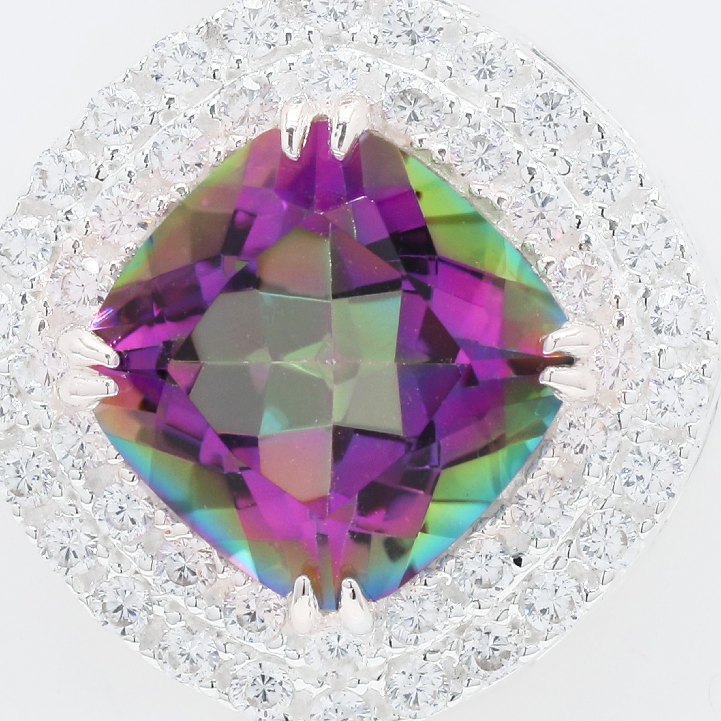 NO RESERVE 5.97 Ct Cushion Mystic Topaz, Cubic Zirconia 925 Sterling Silver Pendant