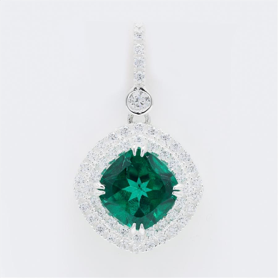 NO RESERVE 6.66 Ct Cushion Green Topaz, Cubic Zirconia 925 Sterling Silver Pendant