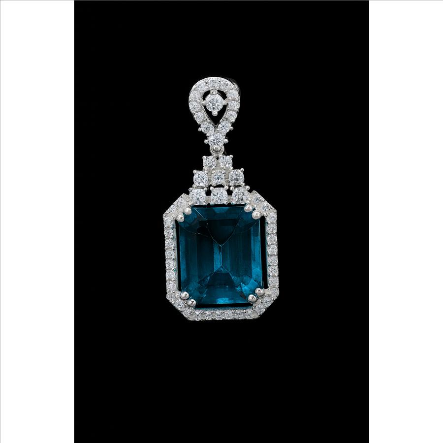 NO RESERVE 7.81 Ct Octagon Paraiba Topaz, Cubic Zirconia 925 Sterling Silver Pendant