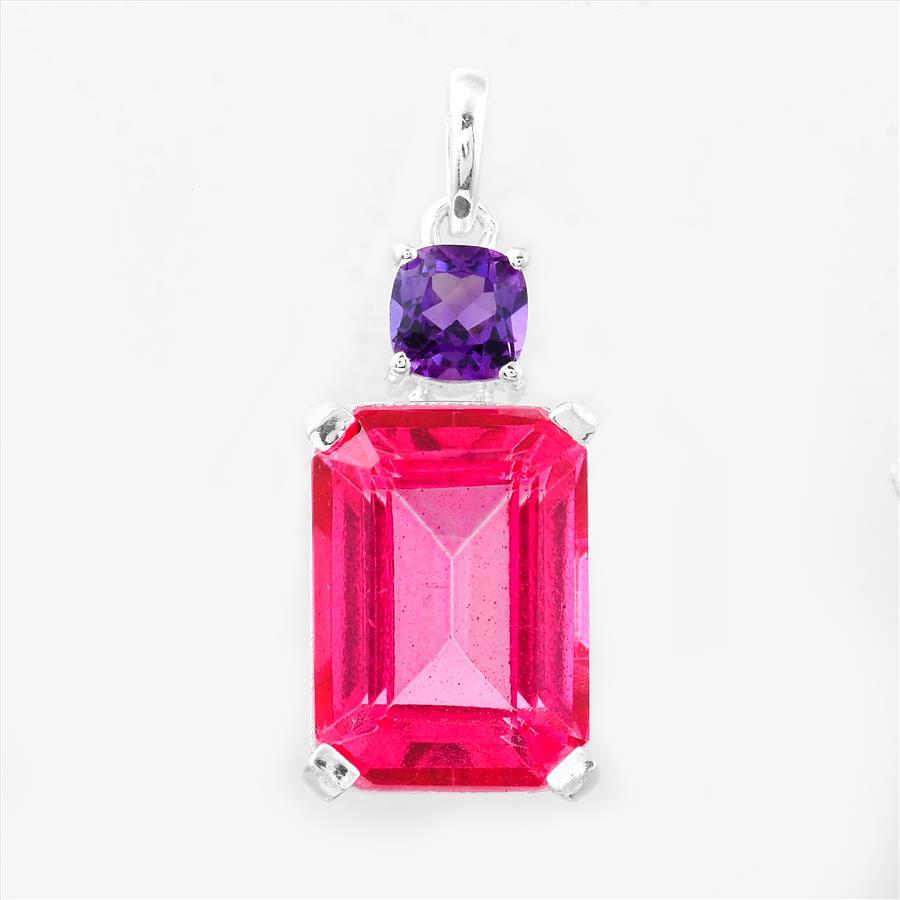 NO RESERVE 8.36 Ct Octagon Pink Topaz, Amethyst, 925 Sterling Silver Pendant