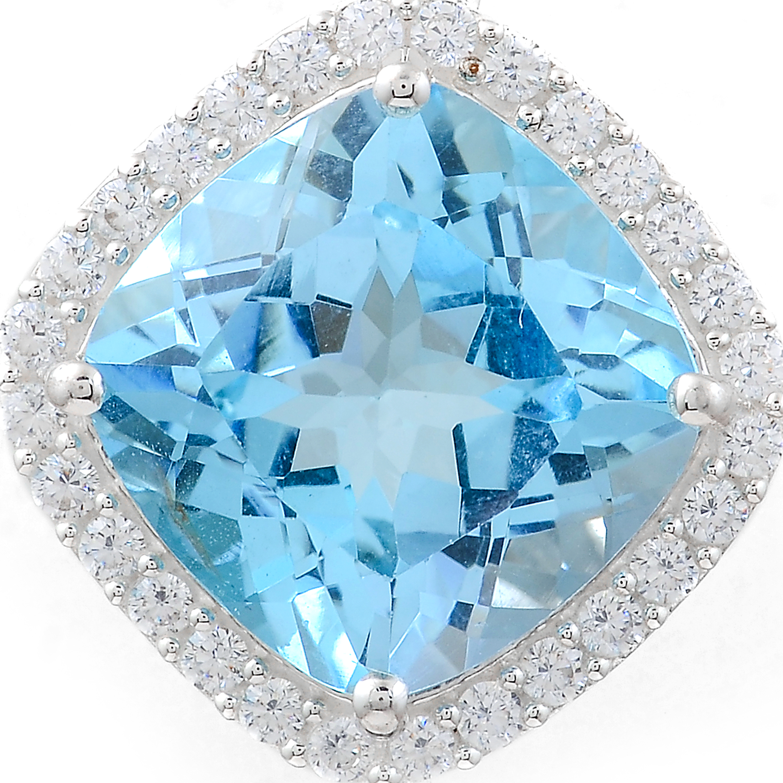 NO RESERVE 8.62 Ct Cushion Blue Topaz, Cubic Zirconia, 925 Sterling Silver Pendant