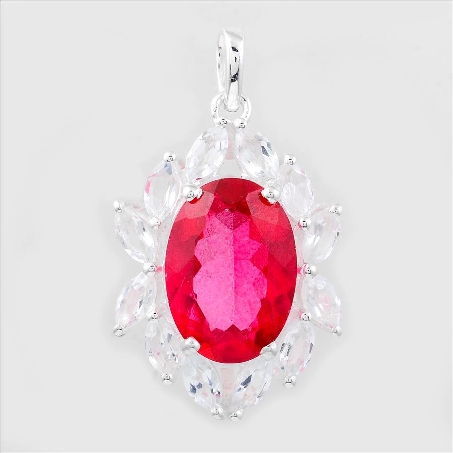 NO RESERVE 8.87 Ct Oval Pink Topaz, White Topaz, 925 Sterling Silver Pendant