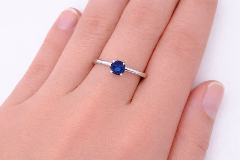 No Reserve 925 Sterling Silver 0.29 Ct Round Glass Sapphire Ring 7 US Ring Size