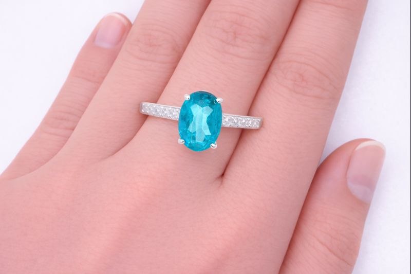 No Reserve 925 Sterling Silver 1.08 Ct Oval Paraiba Topaz Cubic Zirconia Ring 9 US Ring Size