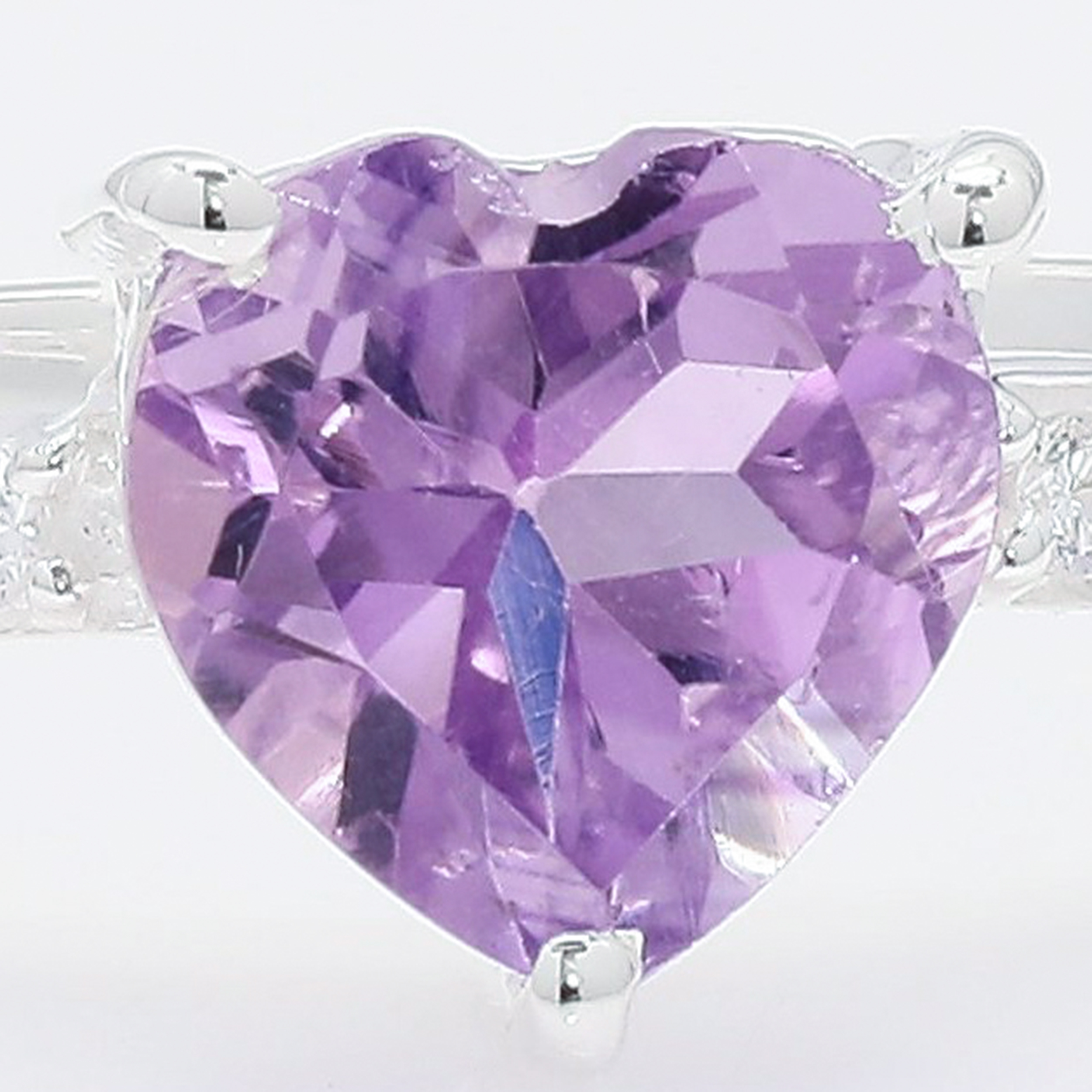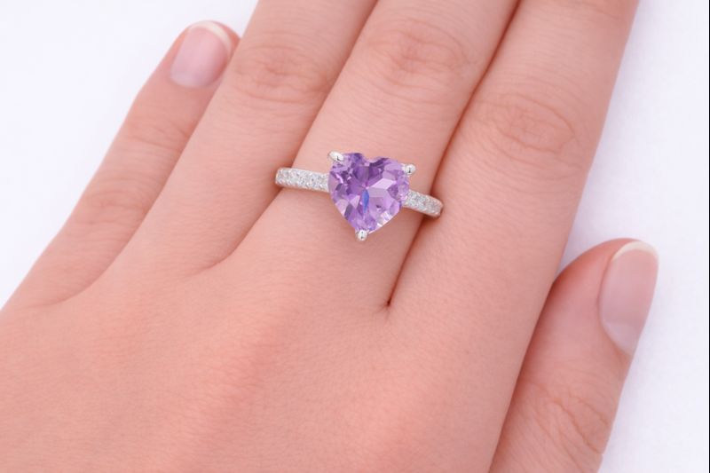 No Reserve 925 Sterling Silver 1.63 Ct Heart Amethyst Cubic Zirconia Ring