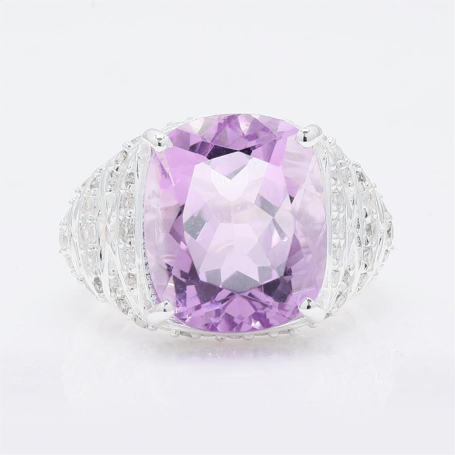 NO RESERVE 9.33 Ct Cushion Amethyst, Cubic Zirconia 925 Sterling Silver Ring