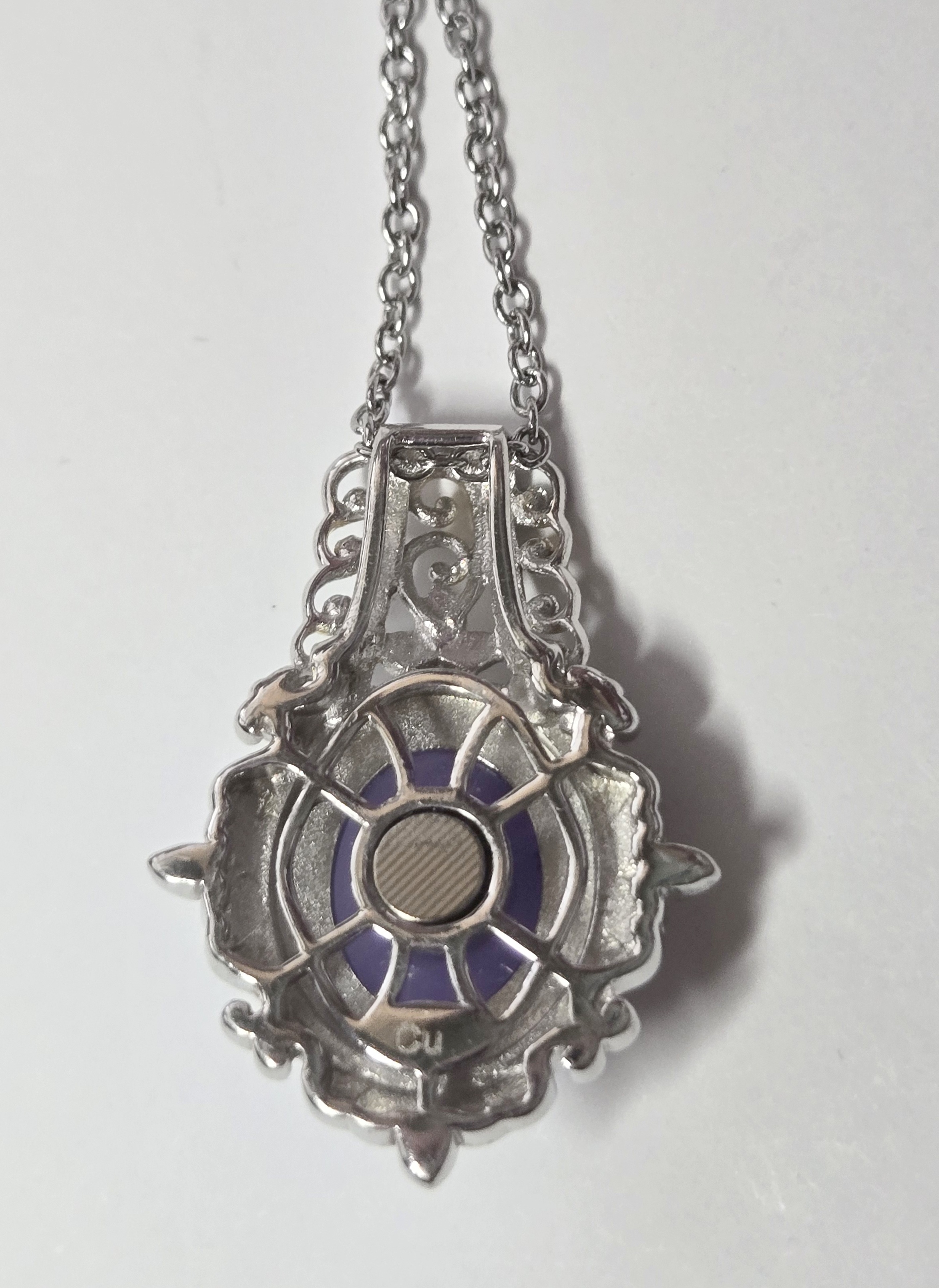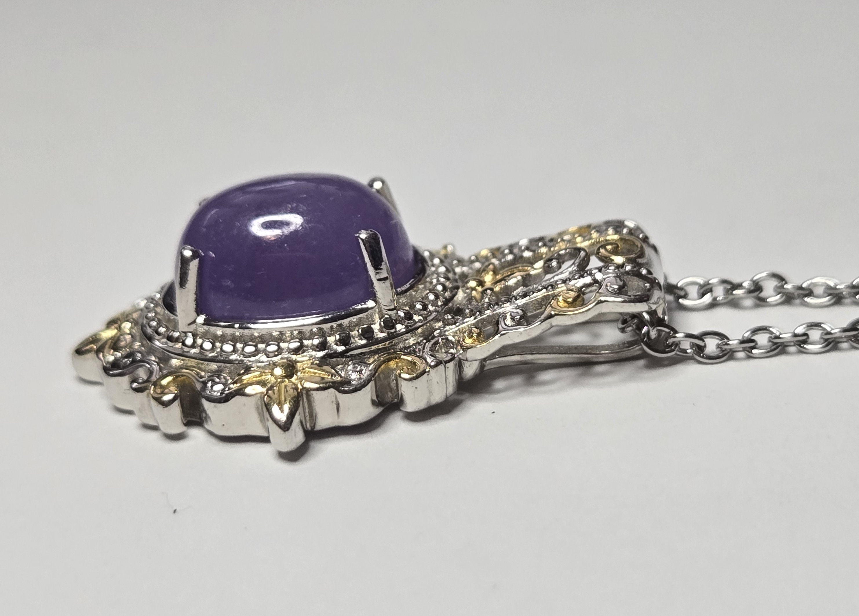 No Reserve .Natural Purple Jade Pendant & Chain Necklace |