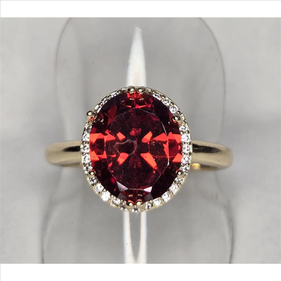 No Reserve Ruby & Zircon Halo Ring Size 7 |