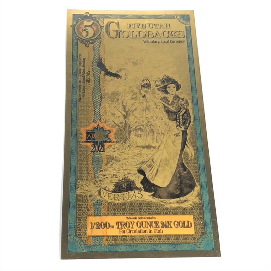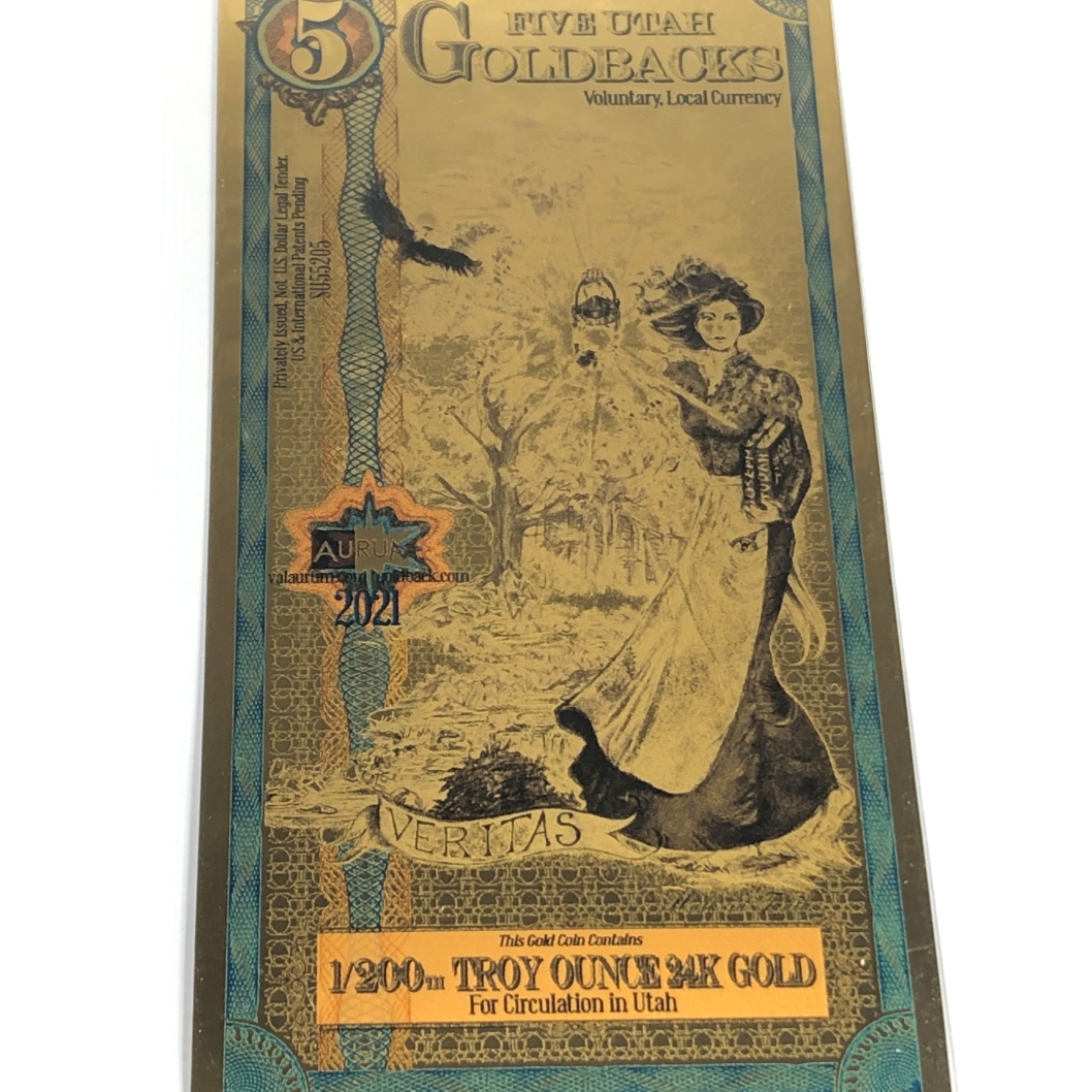 One 5 Utah Goldbacks*1/200 Troy Ounce of 24K Gold*For Circulation in Utah
