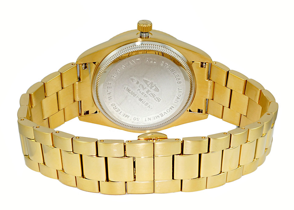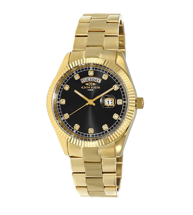 ONISS DAY-DATE WITH SUN RAY BLACK DIAL , ON3881-MGBK , RETAIL AT $345.00