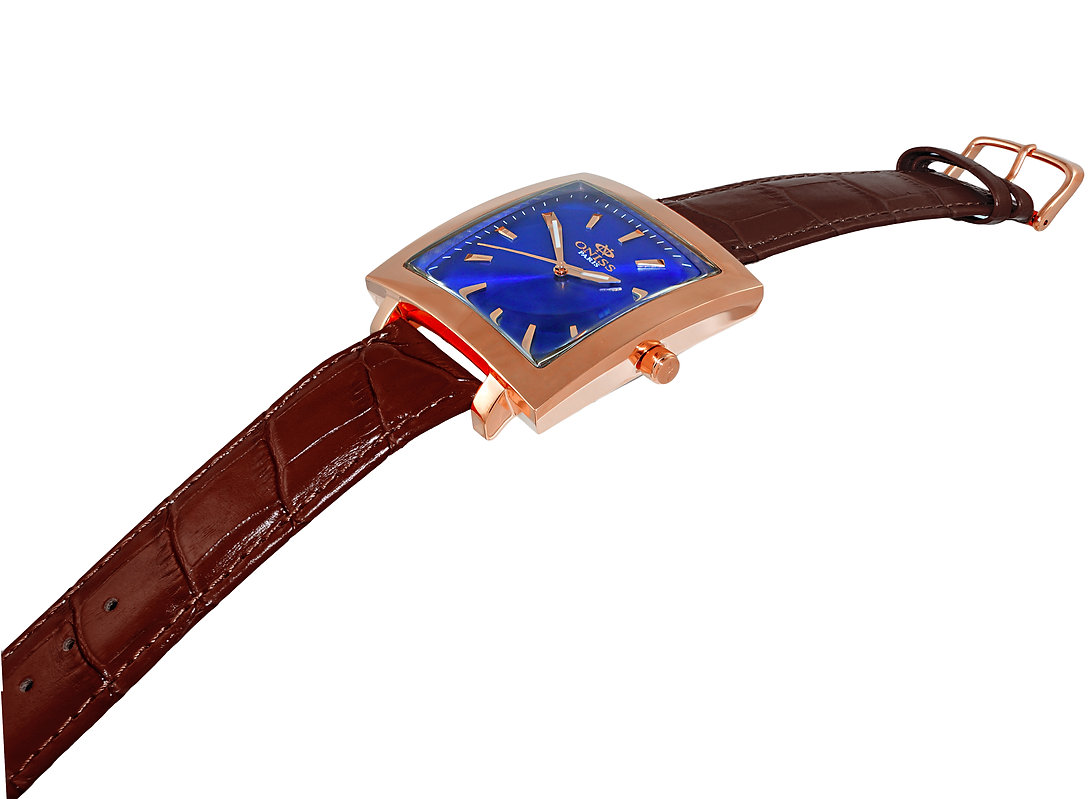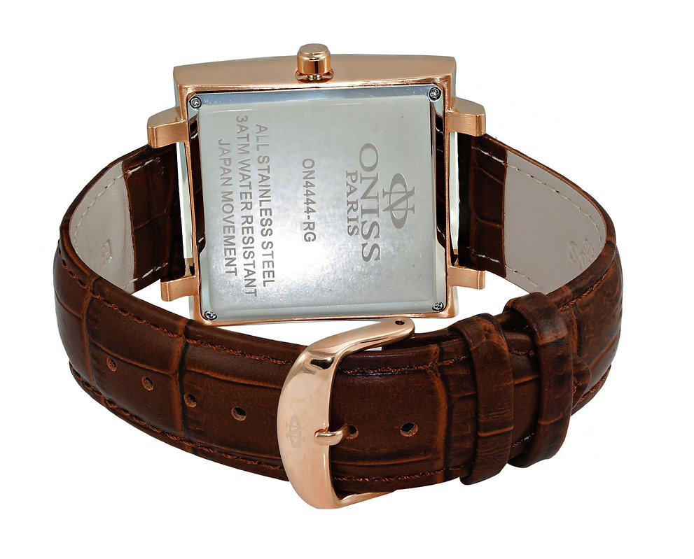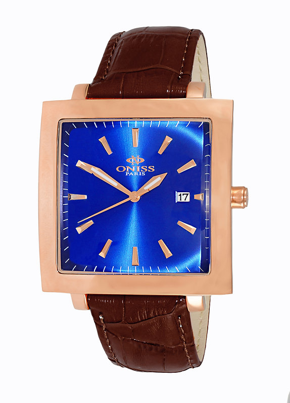 ONISS ROSE TONE, BLUE SUNRAY 3-HANDS DATE DIAL, CURVE CRYSTAL, GENUINE LEATHER BAND (MSRP: $275.00)