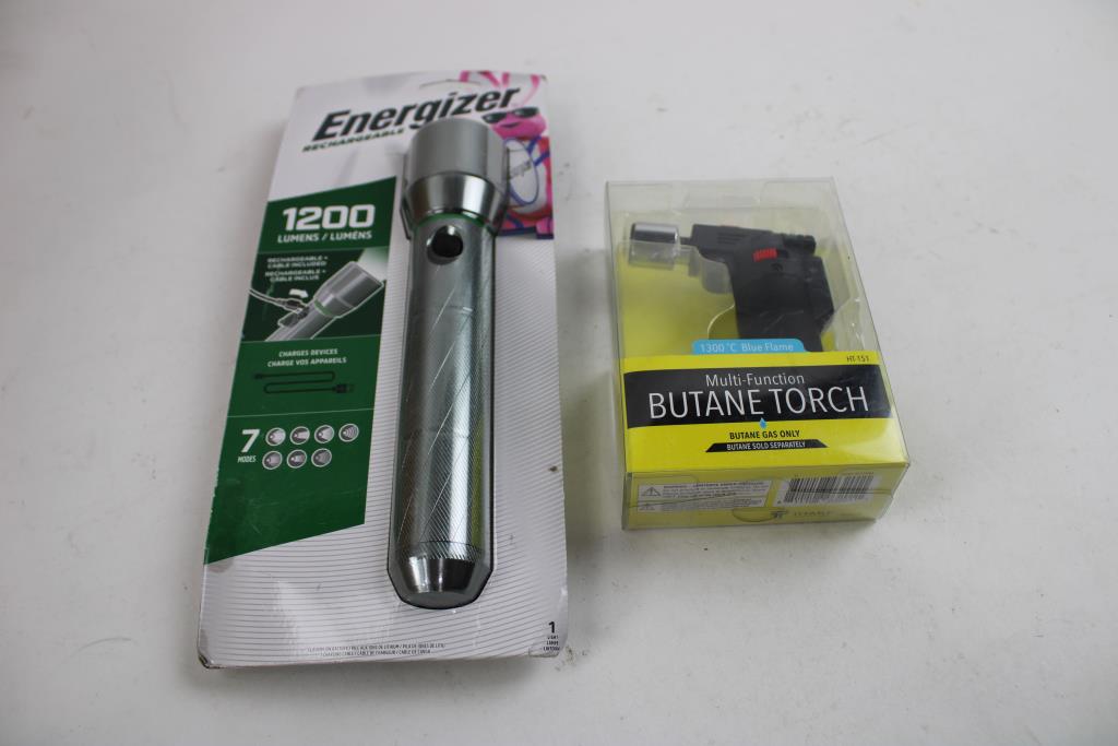 Ozark Trail 18-inch Machete, With Rechargeable Flashlight, And Butane Torch, 3 Pieces