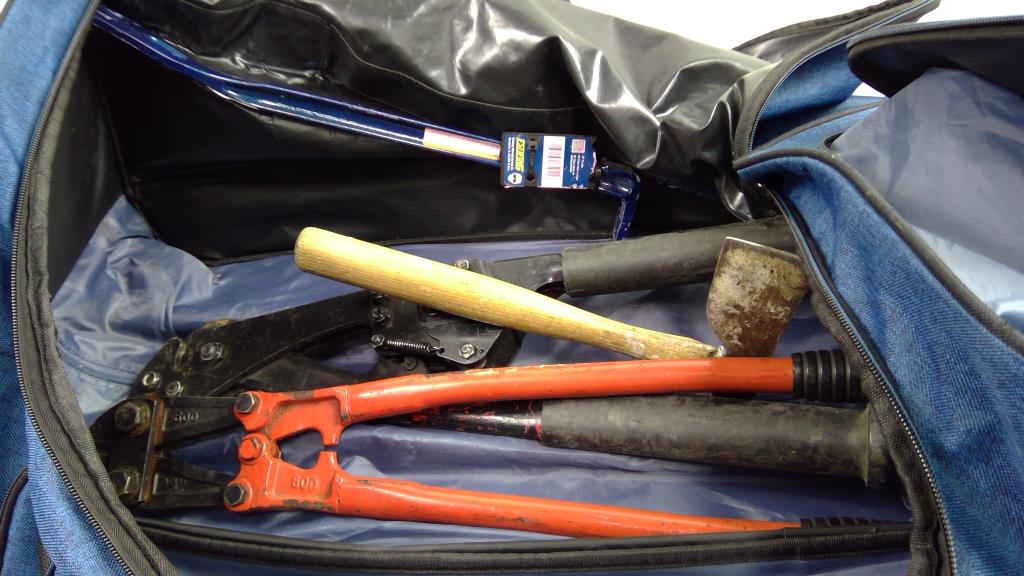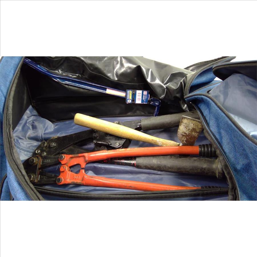 PacificGear Luggage Bag With H.K. Porter Guy Strand Ratchet Cutter, Estwing 18" Pry Bar And More