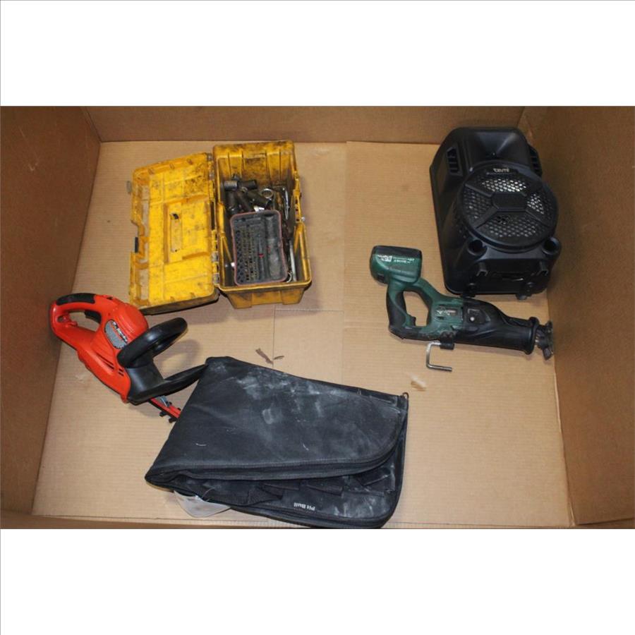 Get a great deal with this online auction presented by PropertyRoom.com on behalf of a law enforcement or public agency client. - Tzumi speaker, toolbox with hand tools, electric hedge trimmer, pit bull rifle case & more