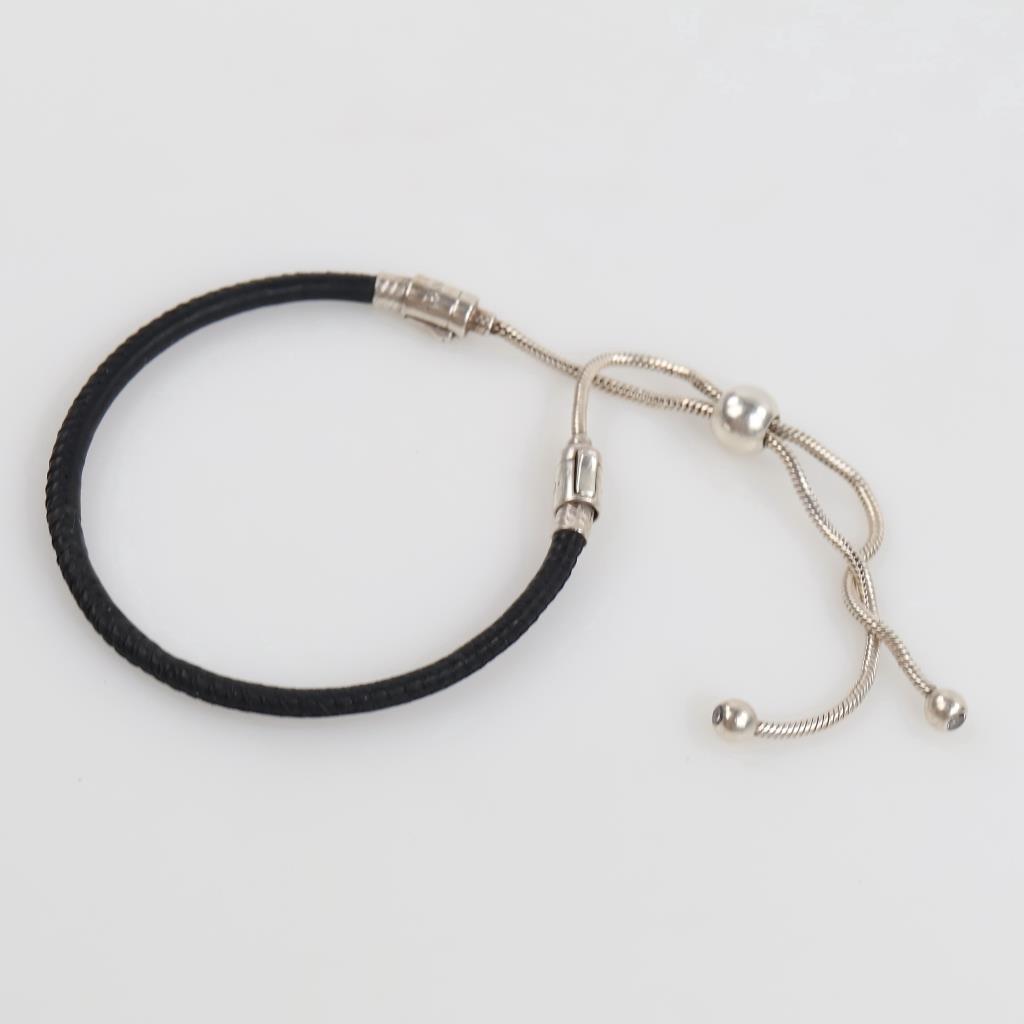 Pandora Moments Black Leather Slider Silver Bracelet