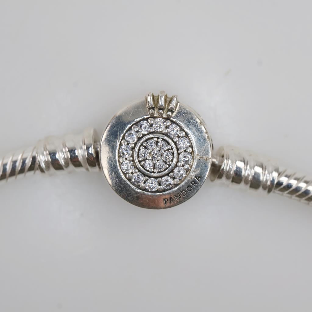Pandora Sterling Silver Moments Sparkling Crown O Clear Stone Accent Snake Chain Bracelet