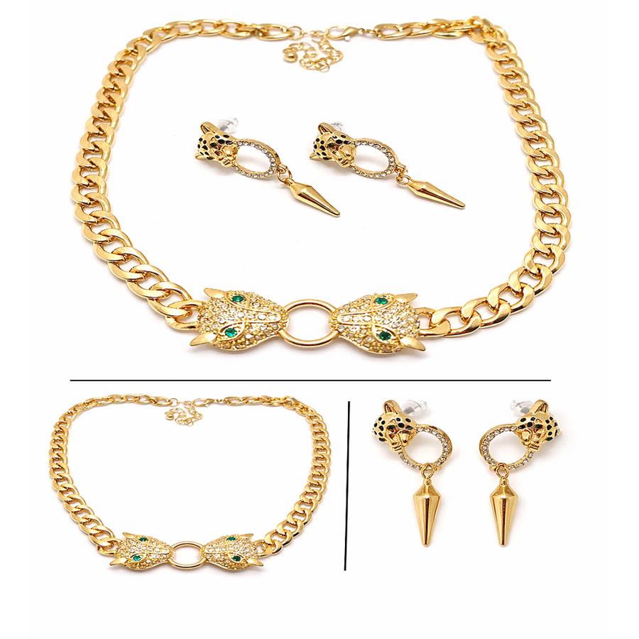 Panther Necklace & Earrings Set 18K Gold Overlay