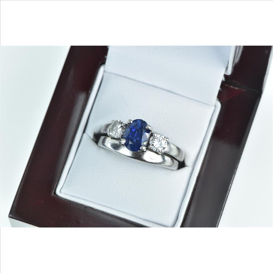 Item:  Platinum 2.55 Ctw Sapphire Diamond Engagement Set Ring, Size 9