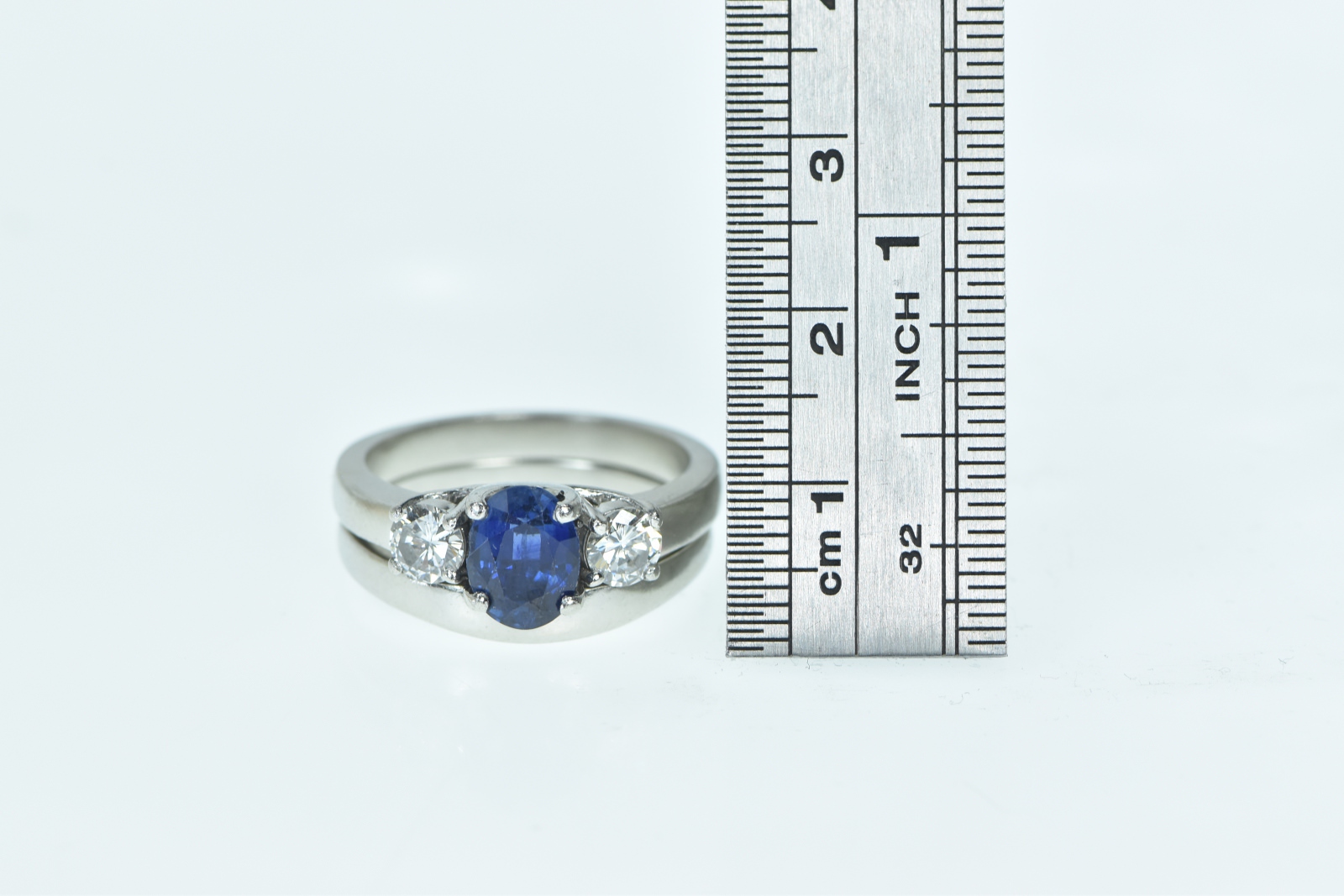 Platinum 2.55 Ctw Sapphire Diamond Engagement Set Ring, Size 9