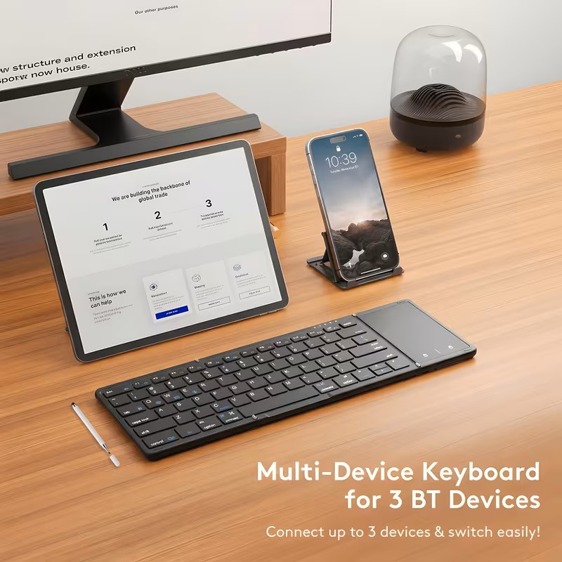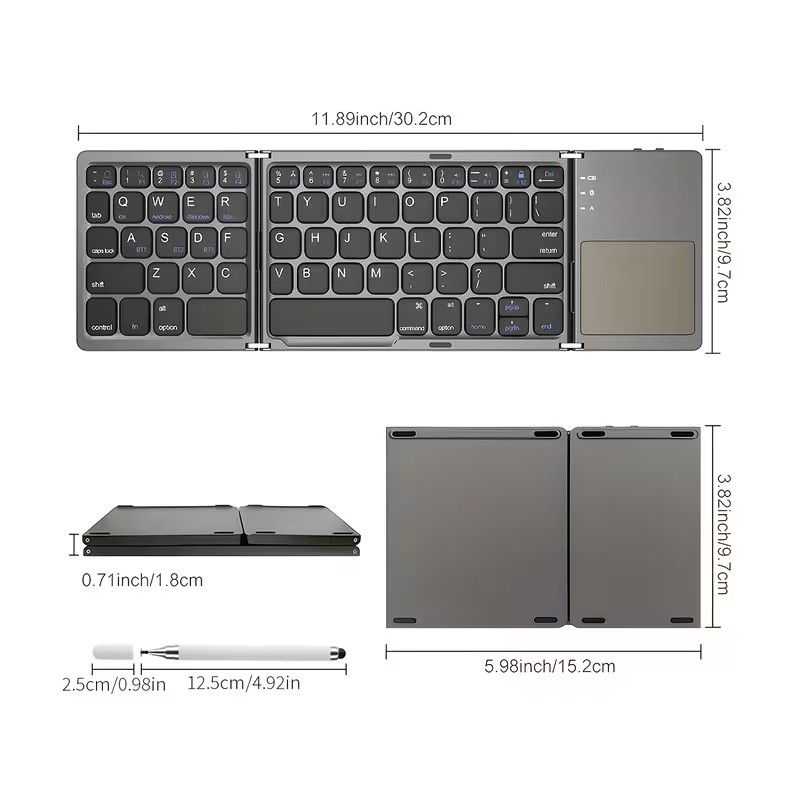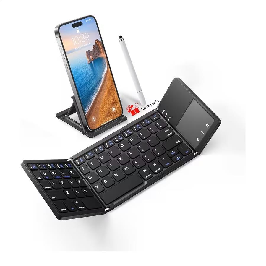 Portable Wireless Tri-Fold Keyboard + Stylus with Touchpad, Ultra-Thin Design, Compatible with Tablets, Smartphones, and Laptops-Ideal for Office Use and Travel. Mobile Phone Accessories, Laptop Accessories, Tablet Accessories