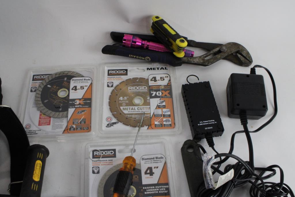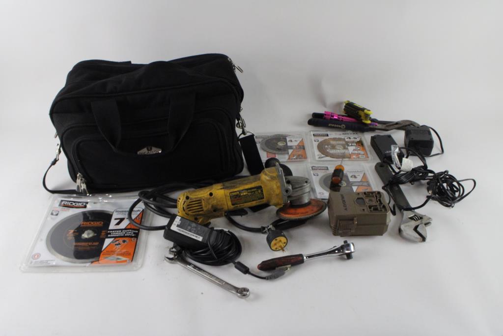 • Items: Iphone, Dewalt 4 1/2" angle grinder, Wrenches, screwdriver, Ratchet and Grider blades and more