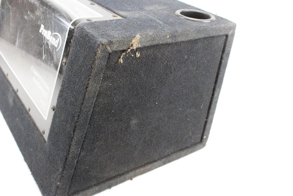 Get a great deal with this online auction for speakers presented by Property Room on behalf of a law enforcement or public agency client. - Probend subwoofer box approx. 28.25 x 16.5 x 13"