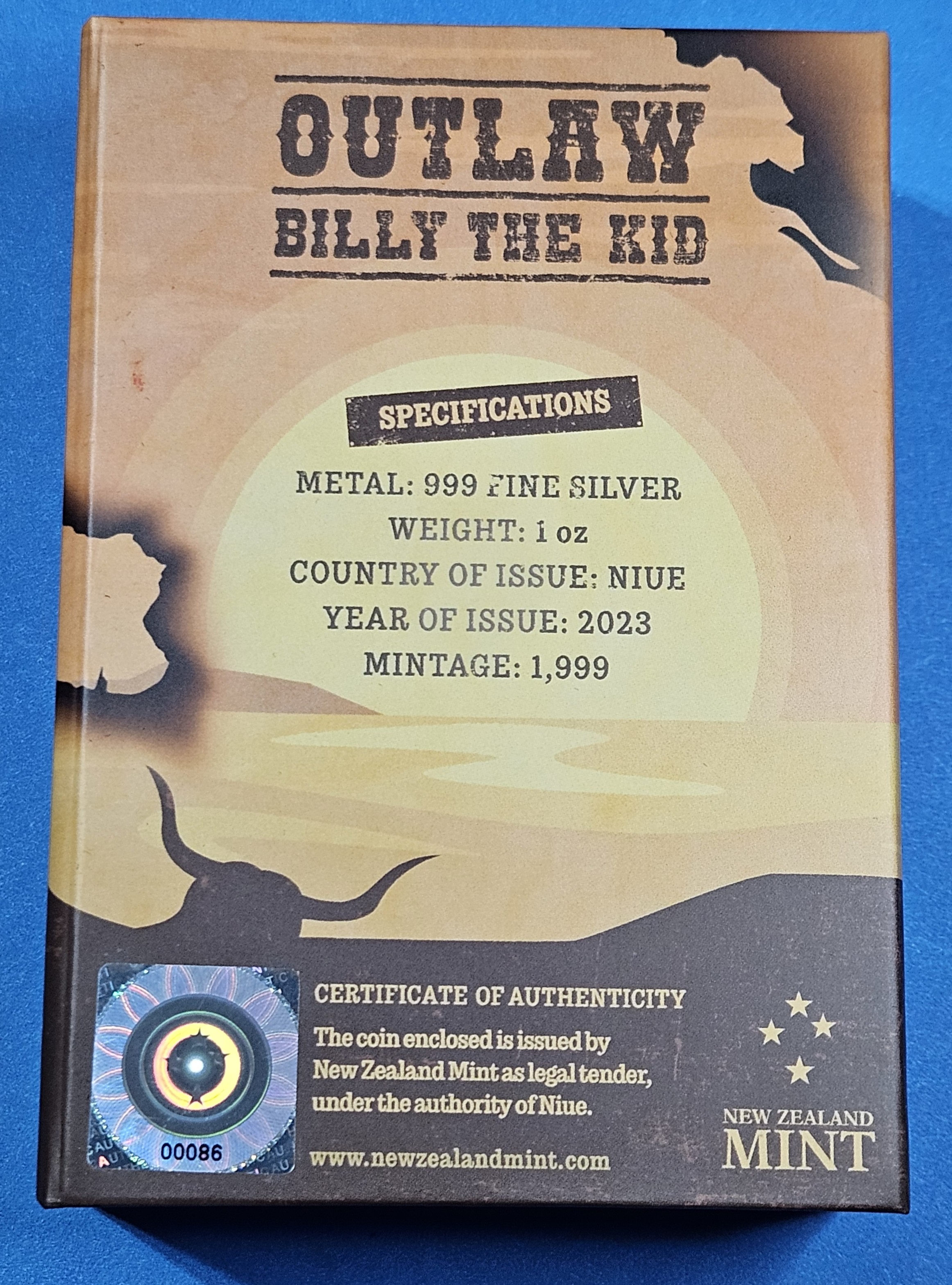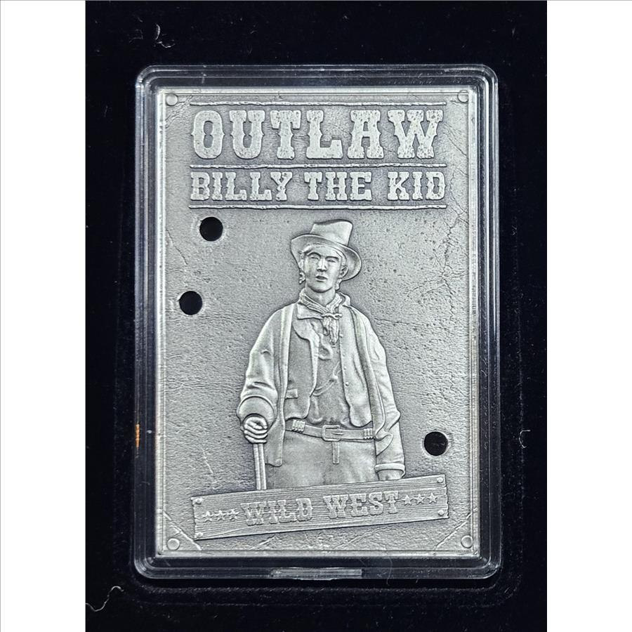 ~Rare~ Billy the Kid Wild West 1 oz Silver Art Bar in Presentation Case - .999 Silver