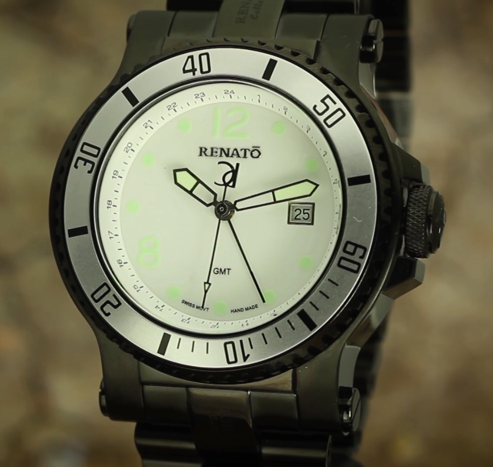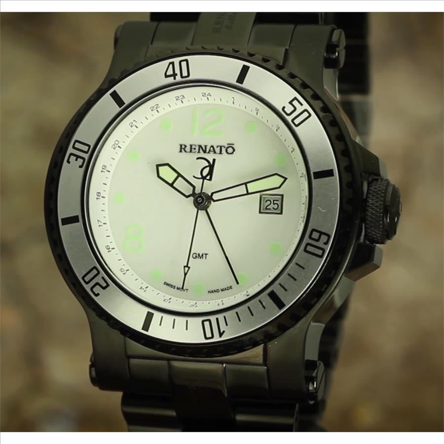 Renato T-Rex Diver GMT 2 Time Zone Limited Production 100pcs White Dial Silver Bezel
