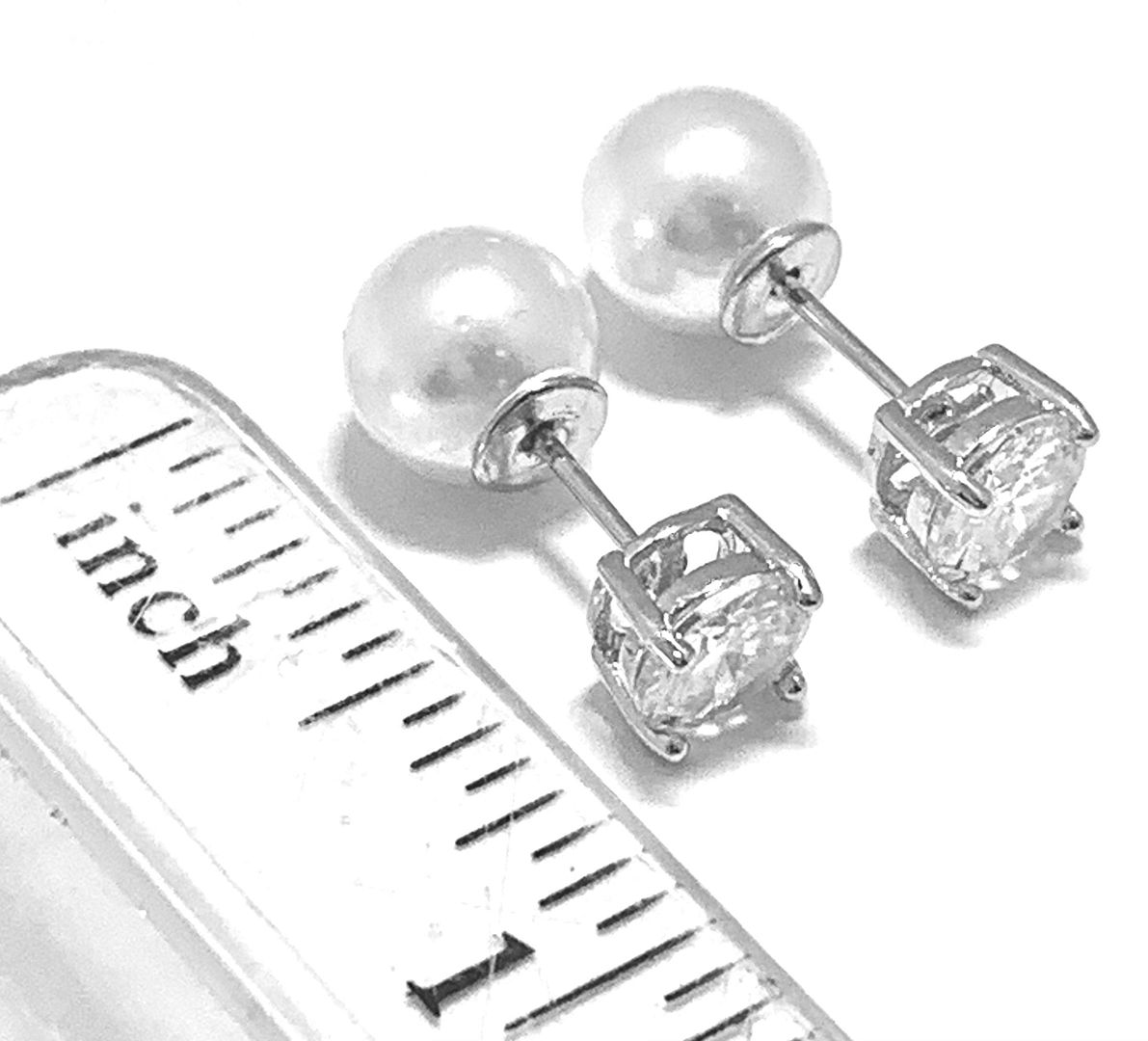 Reversible Design 2 IN 1 3.00ctw VVS-F Simulated Diamond & Pearl Stud Earrings