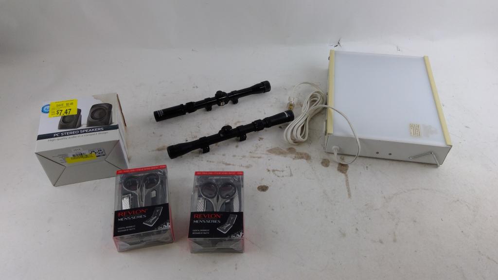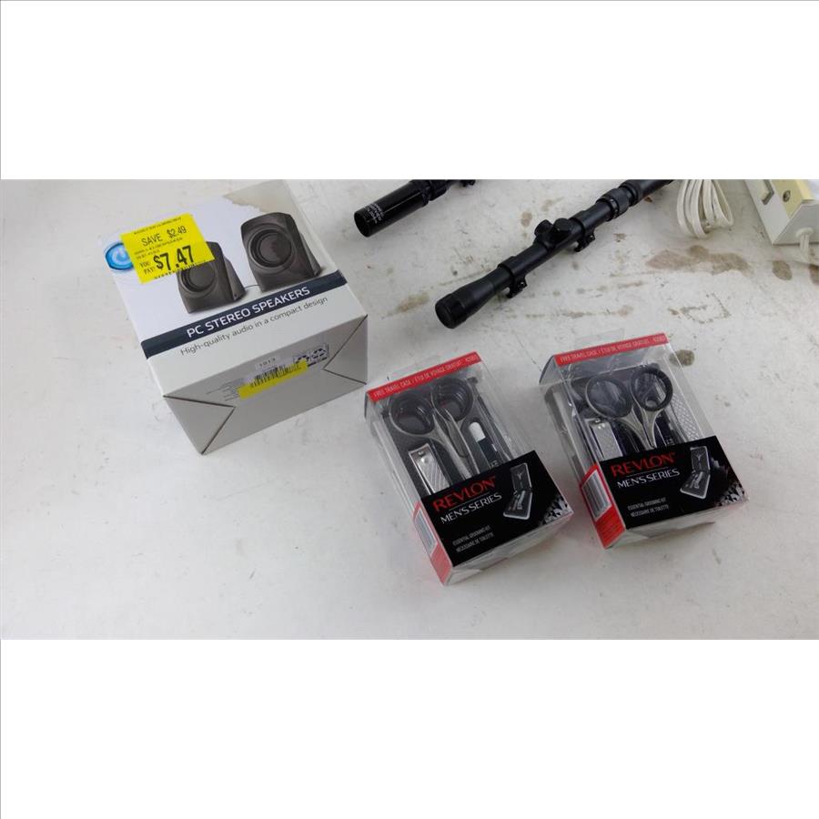 Get a great deal with this online auction presented by PropertyRoom.com on behalf of a law enforcement or public agency client. - Items include: Ridle scopes, Grooming kits, PC stero speakers and more